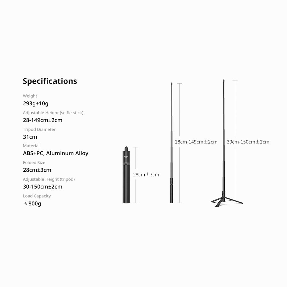 - Adjustable Height (selfie stick) 28-149cm±2cm
