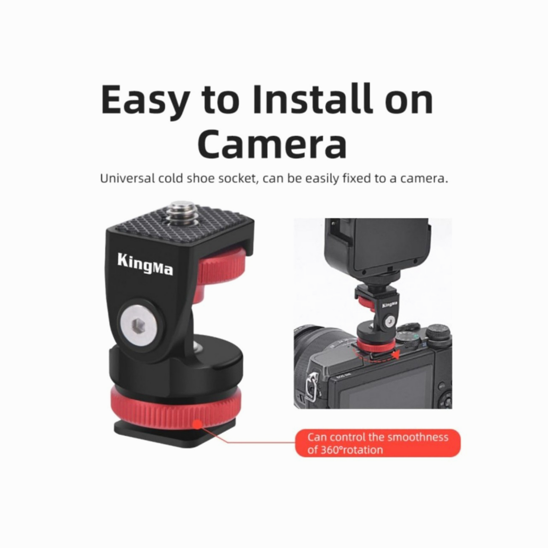 - KINGMA VL007 Aluminum Cold Shoe Camera Bracket Mount Rotate 1/4 Screw