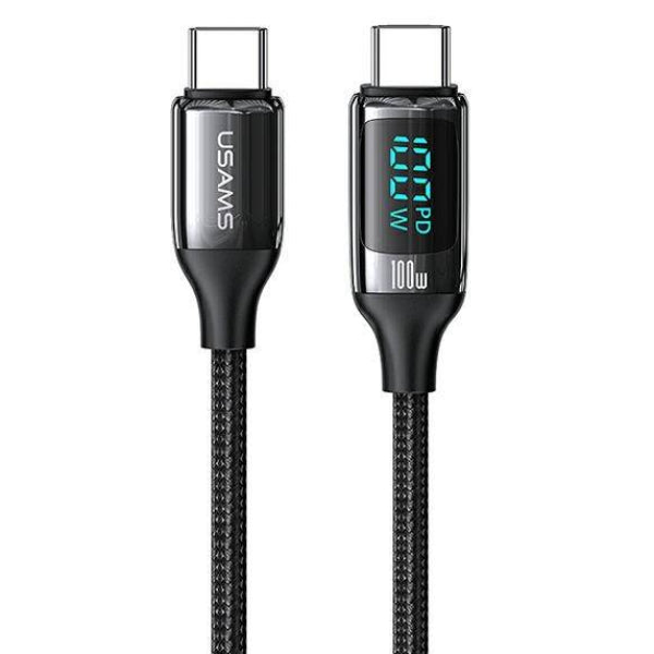 - USAMS Braided Cable U78 USB-C to USB-C LED 2m 100W Fast Charging black/ SJ558USB01 US-SJ558