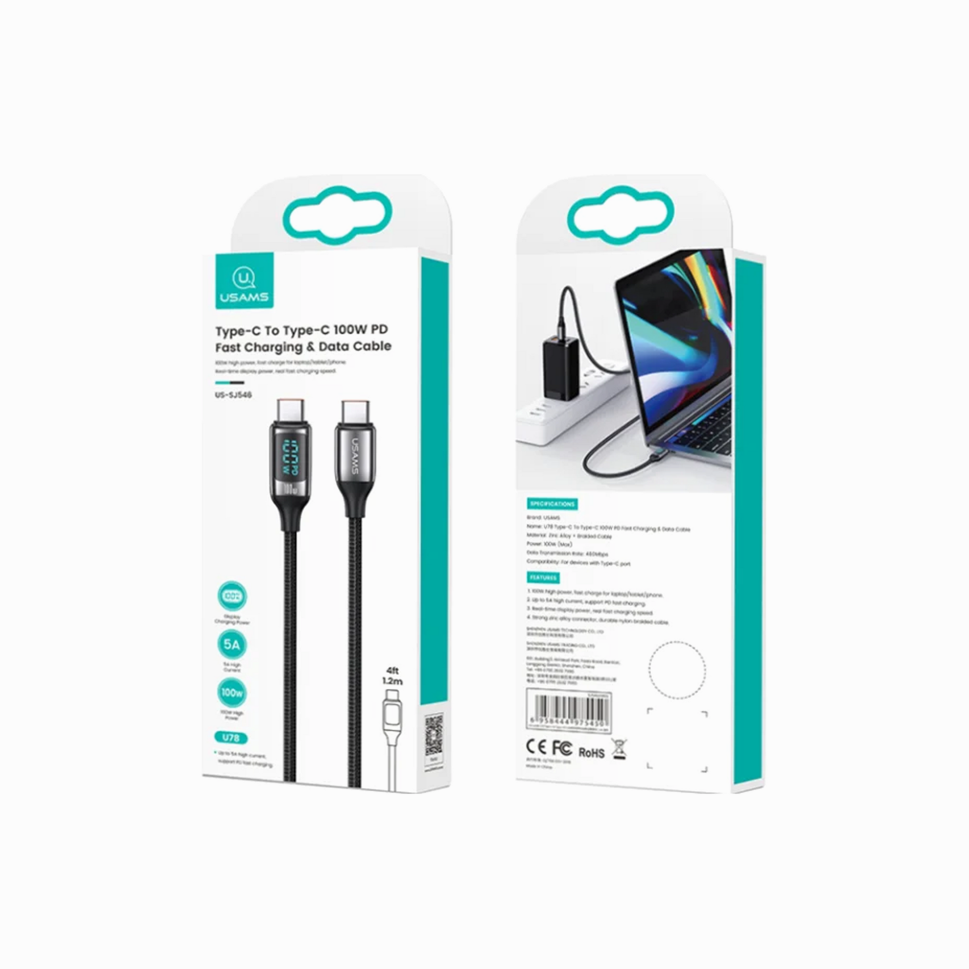 - USAMS Cable USB-C to USB-C LED 1.2m 100W Fast Charging cable(US-SJ546)