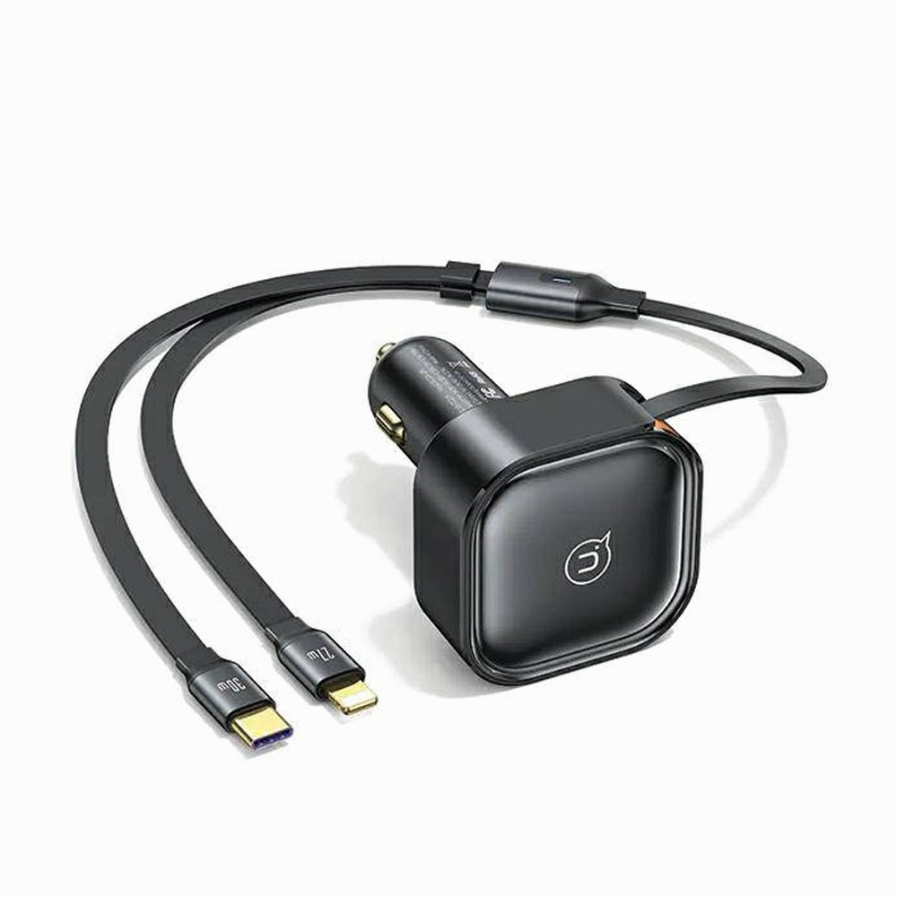 - USAMS US-CC219 Car charger with retractable cable 1xUSB-C+1x Lightning C41 PD 30W Fast Charge