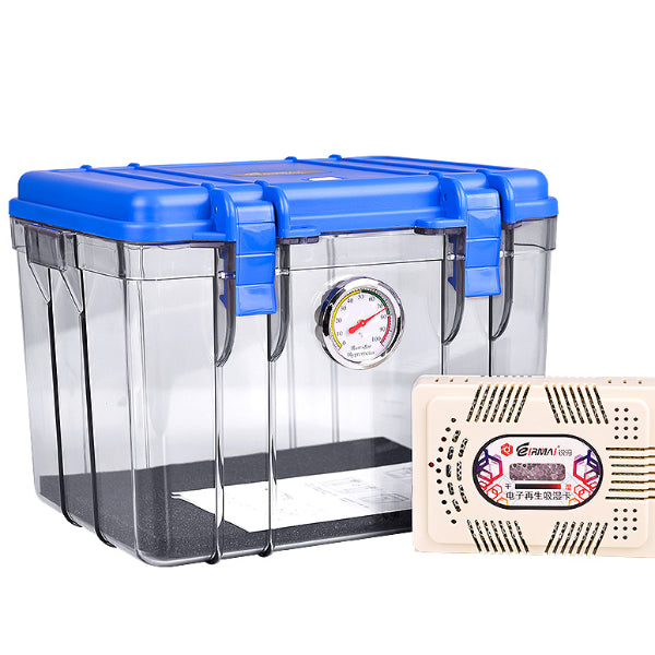 - Control humidity easily: Sealed and airtight, built-in a hygrometer and a renewable dehumidifier.