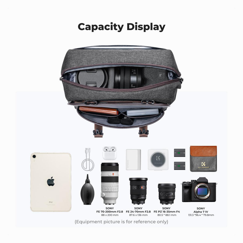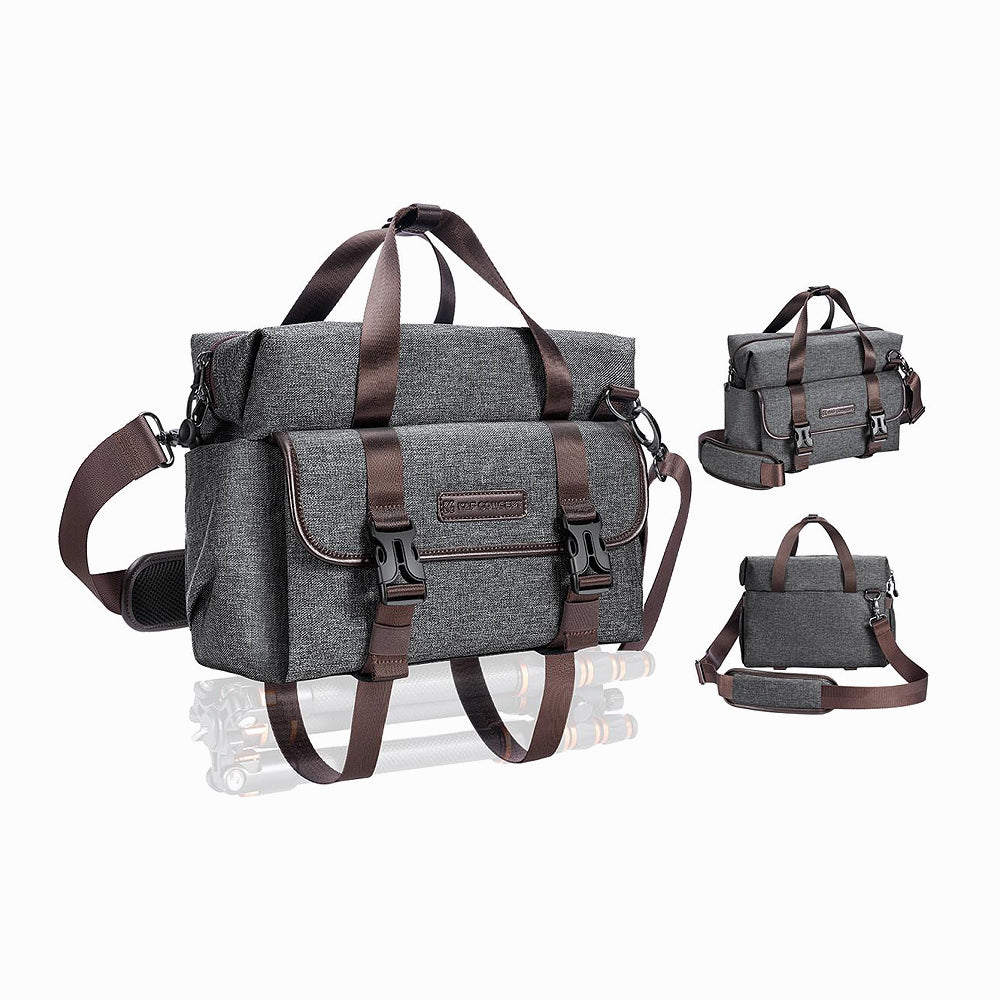 - K&F Concept 8L Retro Camera Shoulder Crossbody Sling Bag with Tripod Holder & Enough Storage for Cameras, Lenses, Drones, Smartphones, Tablets Photography Accessories (Dark Grey-KF13.186)