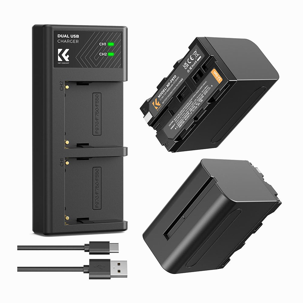 - K&F Concept 2 Pack NP-F970 Battery with LED Charger, Compatible with Sony NP-F550 F570 F750 F770 F930 F950 F960 F970, High-Power LED Lights, Monitors, Camera Sliders (KF28.0047)