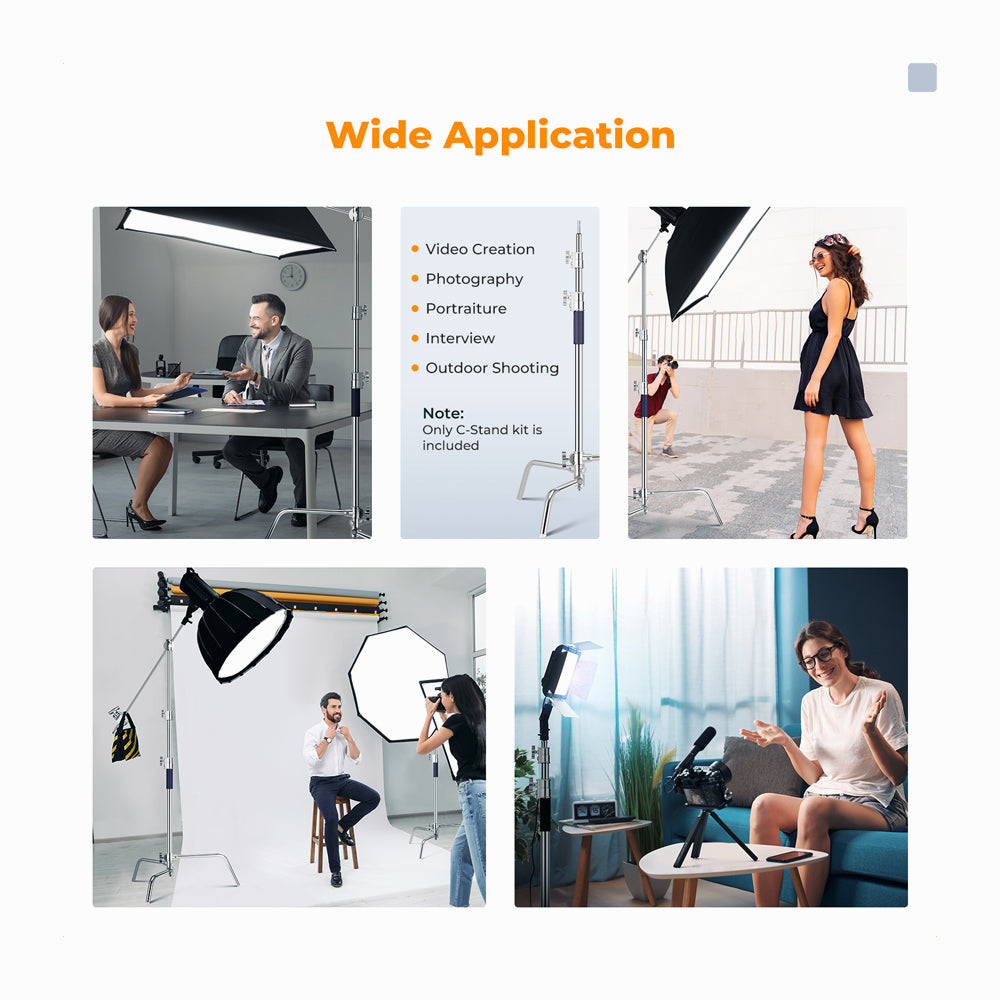 3.3m 100% Stainless Steel Heavy Duty C Stand with Boom Arm, Stand with 126cm Holding Arm, 2 Sandbags SKU: KF34.037