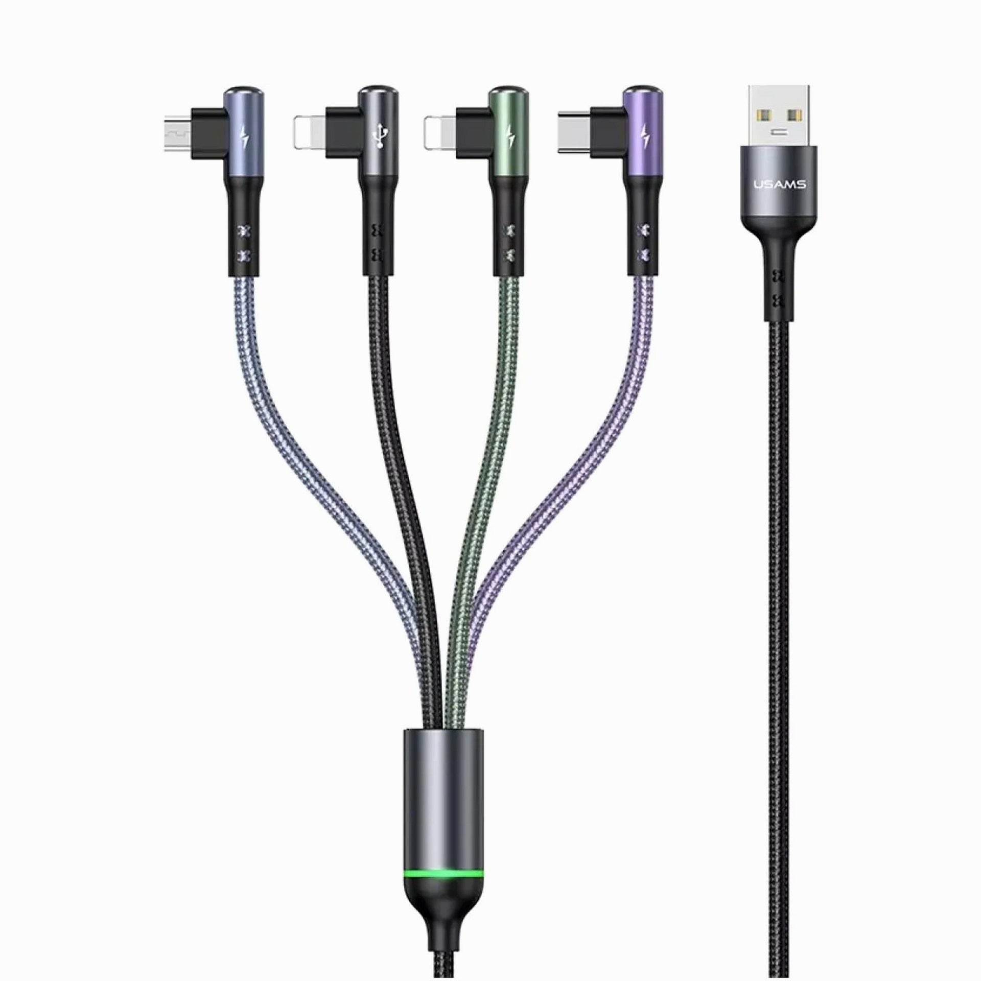 - USAMS US-SJ563 U80 4IN1 Right-angle Charging & Data Cable 1.2m USB To C+L+L+M black