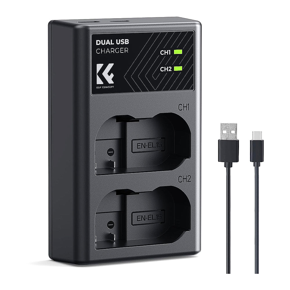 EN-EL15/EN-EL15A/EN-EL15B Battery Charger, Dual Slot Quick Charger for Nikon D7000, D7100, D7200, D750, D850, D810, D800, D800E, D750, D610, D600, D500, Z6, Z7, V1 Camera-SKU: KF28.0006