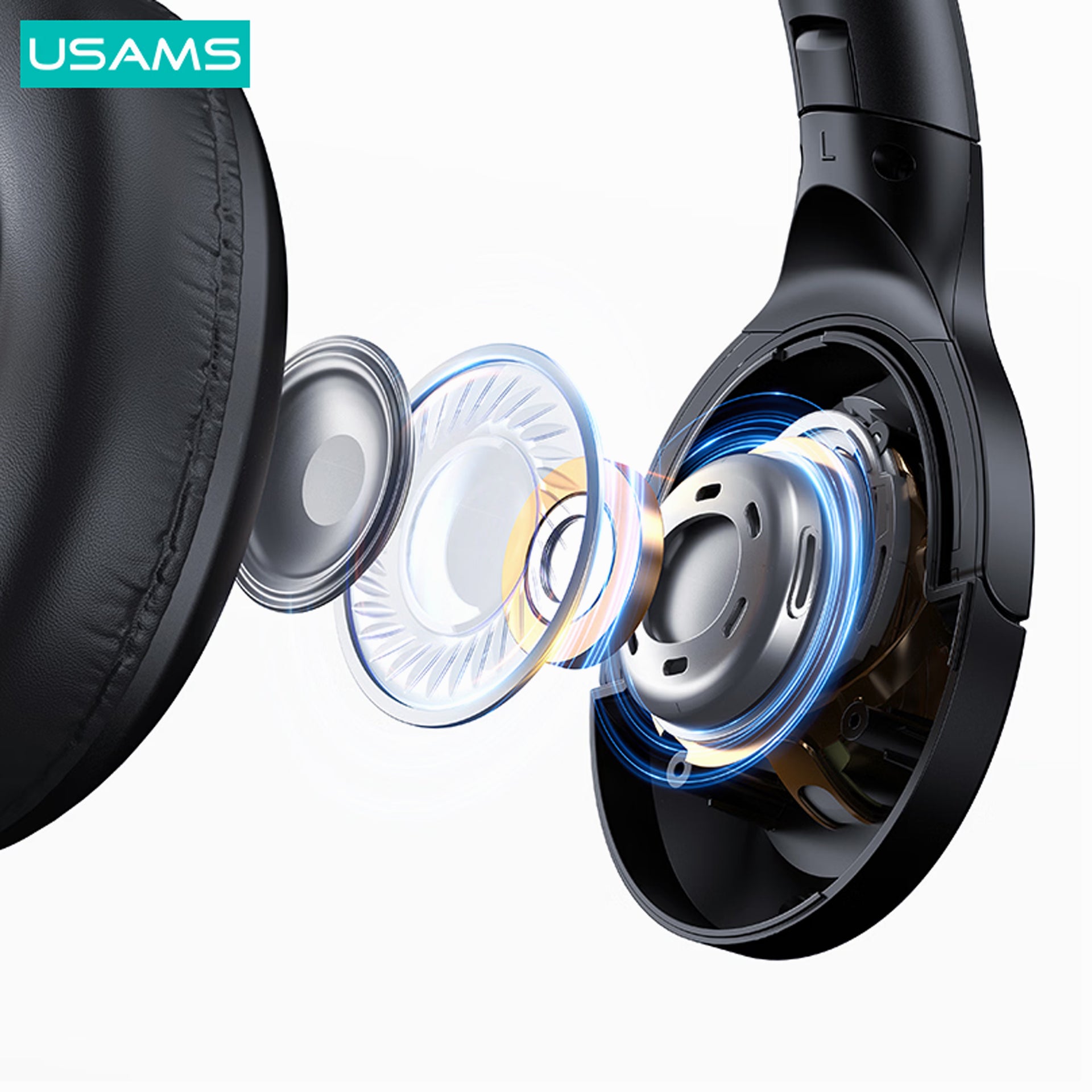 - USAMS YH21 Bluetooth-compatible Over-Ear Headphones HiFi Stereo Headset 70H Long Playtime Hands-Free Calls - Black