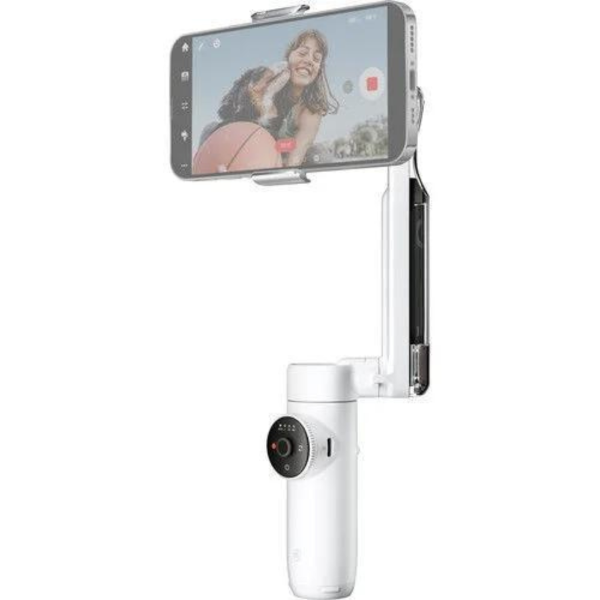 The Insta360 Flow Smartphone Gimbal Stabilizer in white offers smooth, cinematic stabilization for your smartphone videos. Featuring a sleek, lightweight design, it provides advanced stabilization technology that ensures steady footage even during dynamic movements. With easy-to-use controls and compatibility with most smartphones, the Insta360 Flow is perfect for creators looking to elevate their mobile videography.
