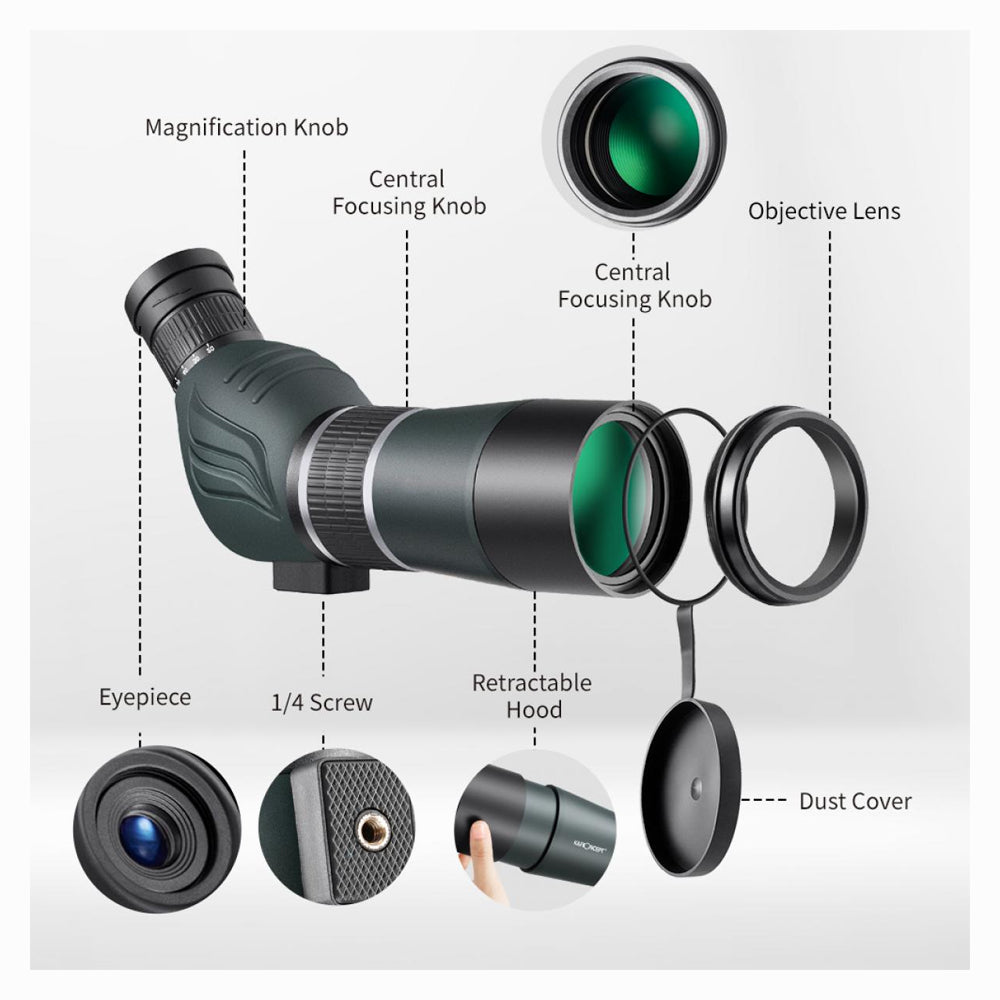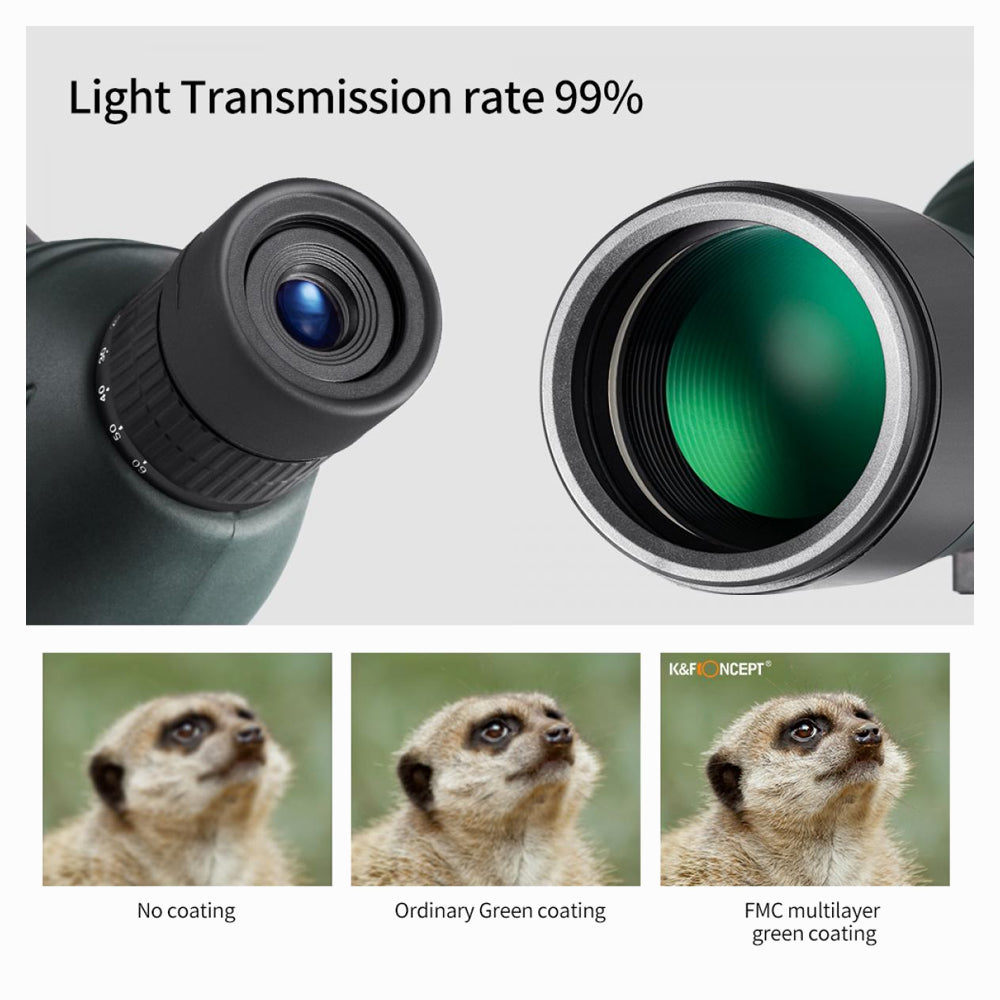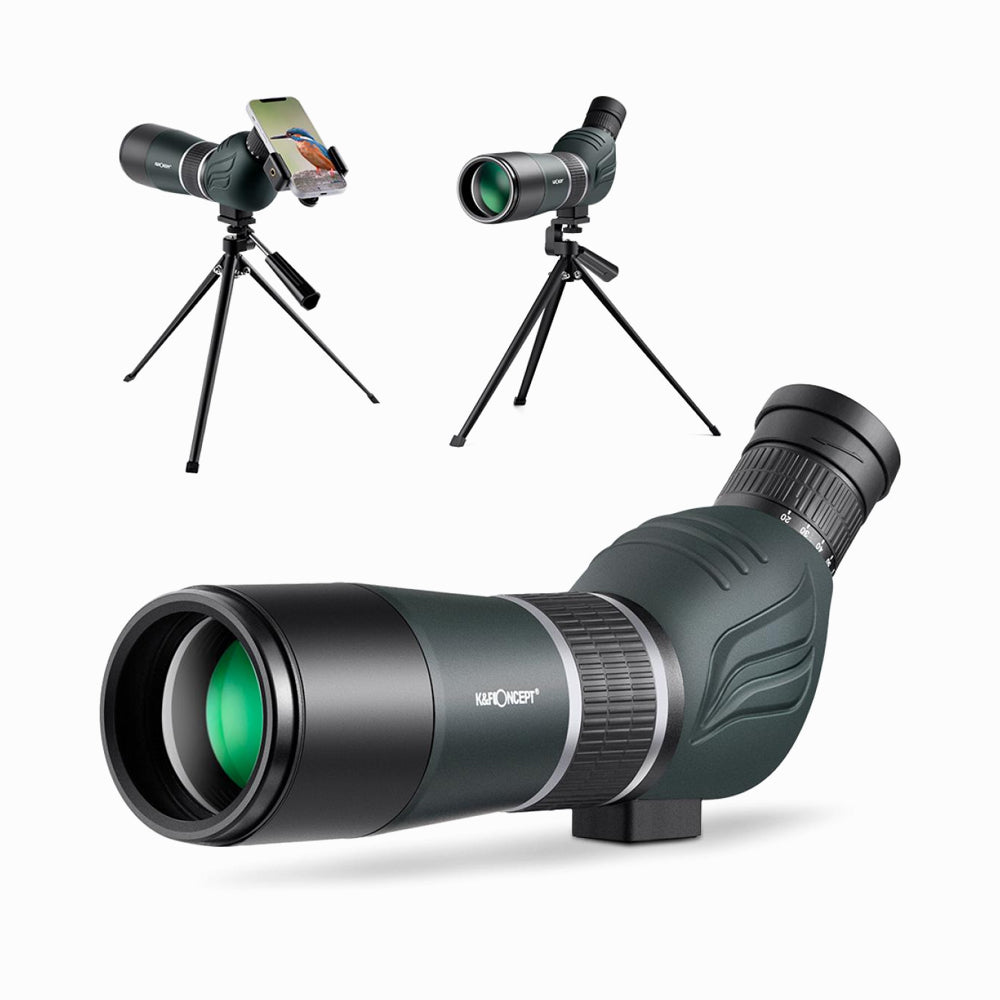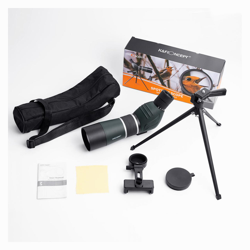 - K&F Concept 20-60x60 Spotting Scopes for Target Shooting, Waterproof Spotter Scope with Tripod & Phone Adapter, 131-66ft/1000yds BAK4 45°Angled Eyepiece Range Scope for Bird Watching Wildlife Hunting(