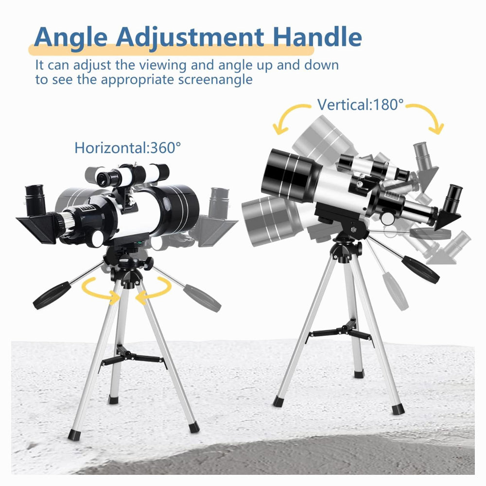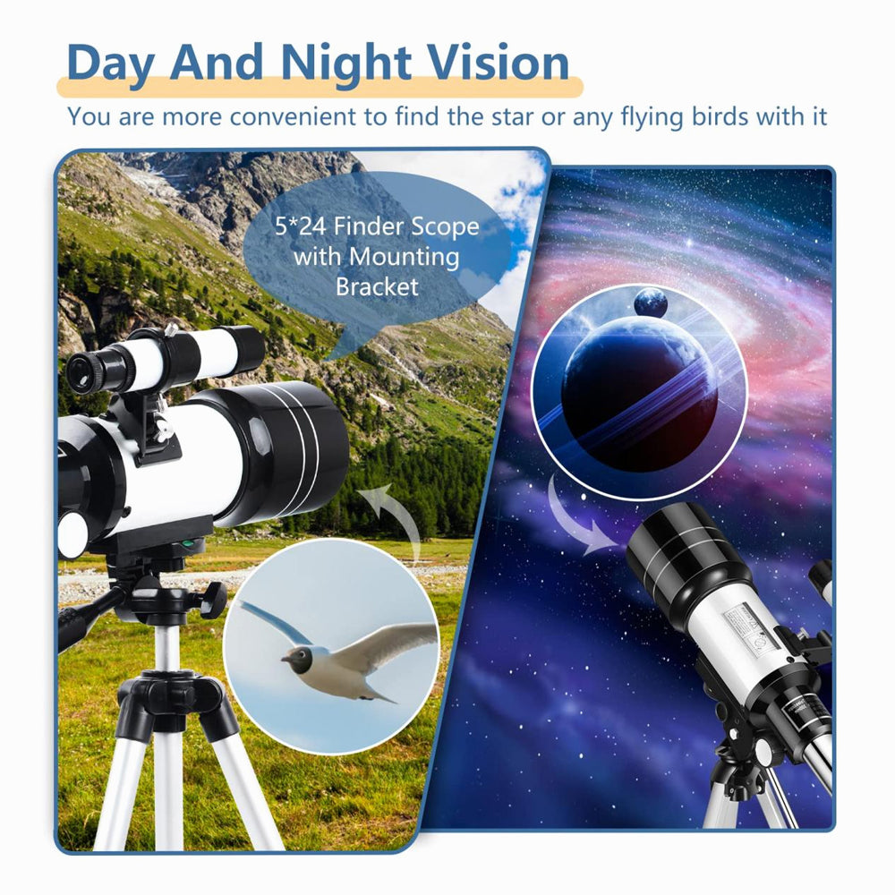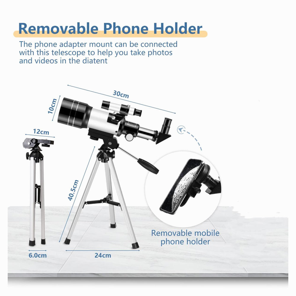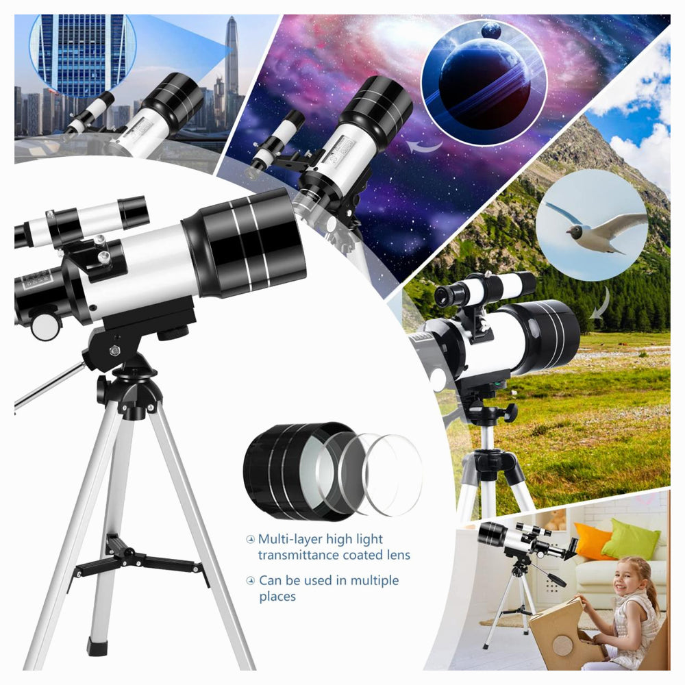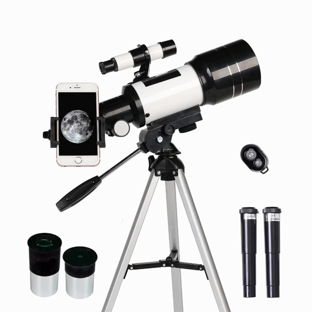 Children Solar Eclipse & Astronomical Telescope 70mm Aperture 300mm Focal Length, Portable Telescope with Tripod, Phone Holder & Bluetooth Remote Control