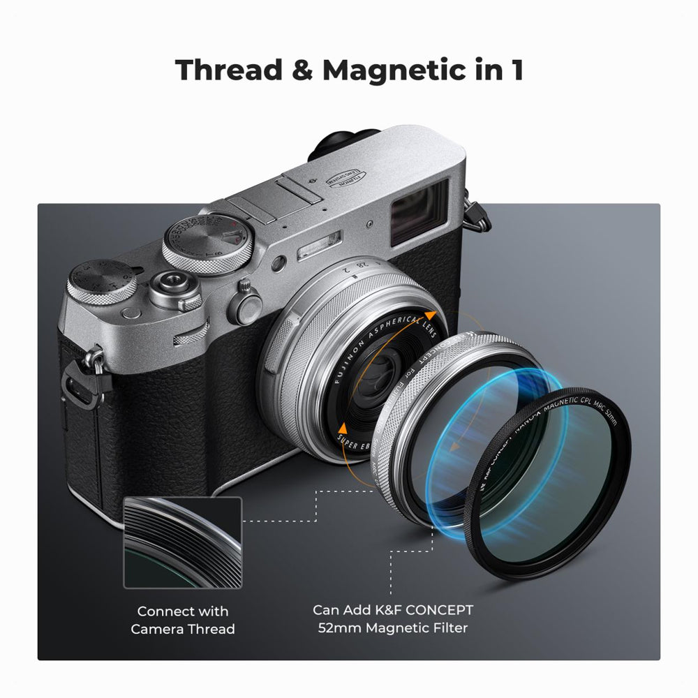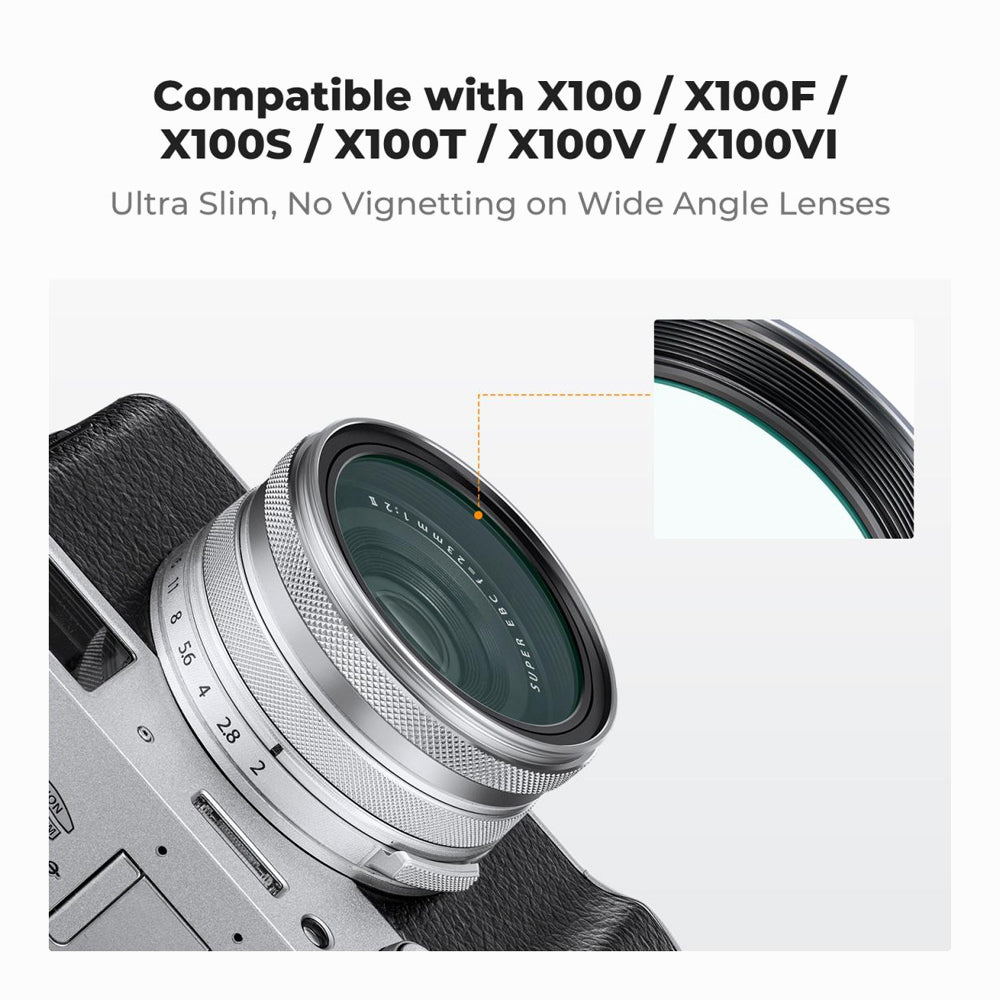 - K&F Concept Fuji X100 Lens MCUV Filter, Multi Coated HD Optical Glass Scratch-resistant Compatible with Fuji X100, X100F, X100S, X100T, X100V, X100VI Nano-Xcel Series (Black) KF01.2882
