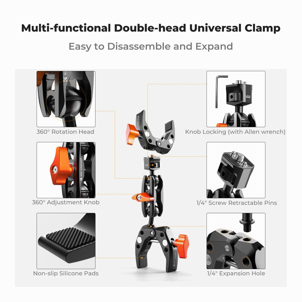 - K&F Concept MS25 Super Clamp with Dual Ballhead Magic Arm (KF31.096)