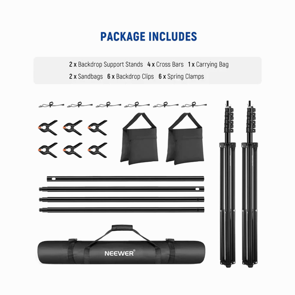 - Neewer 2.6x3m Lightweight Backdrop Stand Kit with Clamps & Sandbags