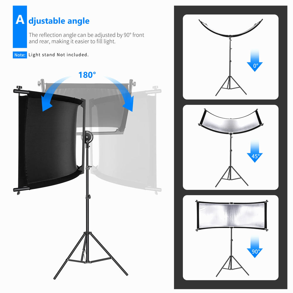 Make the Eyes Pop- Neewer Clamshell Reflector imitates the curvature of human eyes and bounces crescent catchlights to make the eyes sparkle in portrait photography. The light seamlessly reflected from three perspectives can eliminate shadows, and the fabric is suited for strobes, monolights, LED lights, and even natural sunlight
