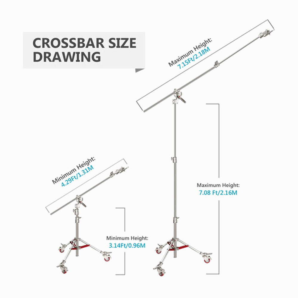 - Neewer Pro Stainless Steel C Stand Light Stand with Pulleys, Max. Height 14.4ft/440cm with 7ft/218cm Cross-Bar and Empty Sandbag
