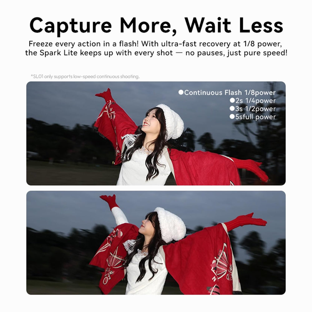 - With a guide number of 8, the Spark Lite delivers brilliant lighting.