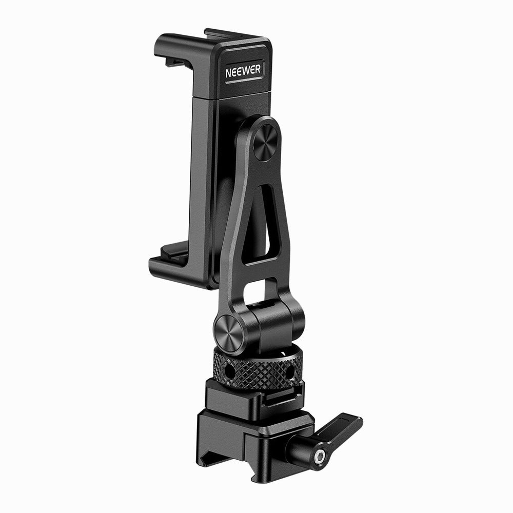 - The phone holder features a cold shoe adapter with a built-in 1/4"-20 thread. You can twist the thumbscrew to secure it on a camera's hot or cold shoe mount, camera cages, top handles, or sling handle grips with a cold shoe, or a vlogging mini tripod, travel tripod, tripod ball head, monopod, camera slider, camera dolly with a 1/4"-20 mounting screw.