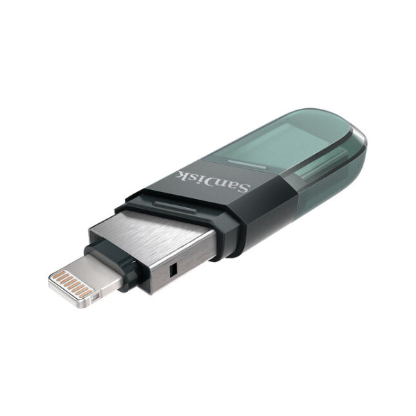 You can also password-protect your files to keep them private4 , even across multiple devices. Plus, the handy Flip cap protects the Lightning connector, and you can conveniently stow it on the USB Type-A side while in use. One drive.