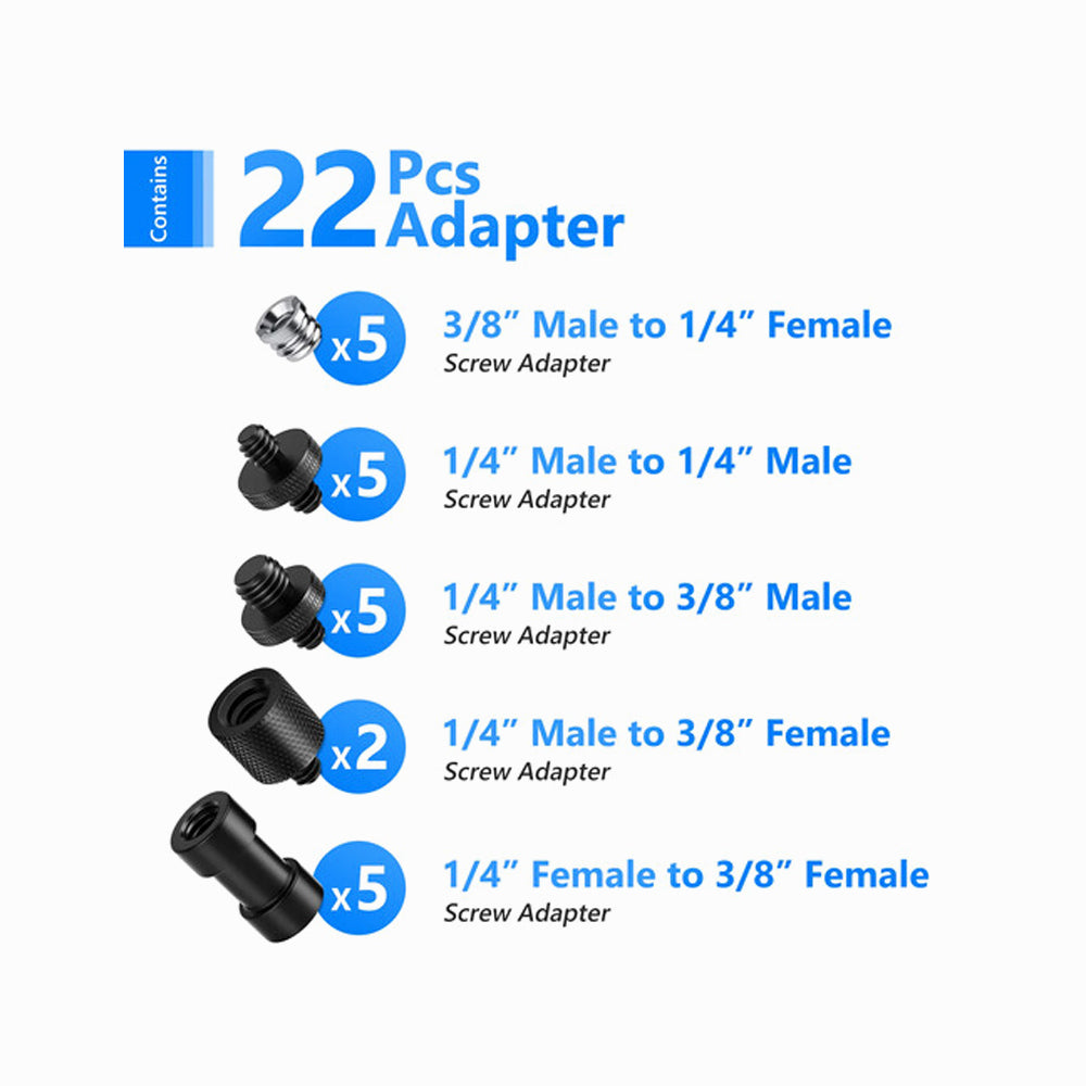 - 5 x 1/4"-20 Female to 3/8"-16 Female