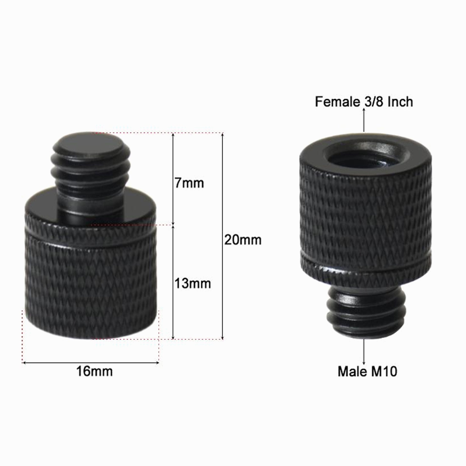 Tripod adapter Female 3/8" - Male M10 Aluminium Black