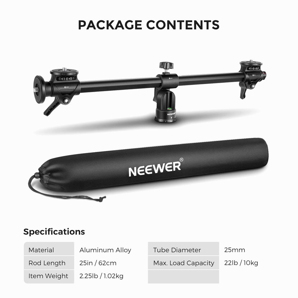 Stable and Sturdy- The 25mm large diameter aluminum alloy cross arm provides greater stability and load capacity. Measuring 25in/62cm in length and with a load capacity of up to 22lb/10kg, the arm reduces manual camera shake and the usual accompanying fatigue experienced by the photographer.