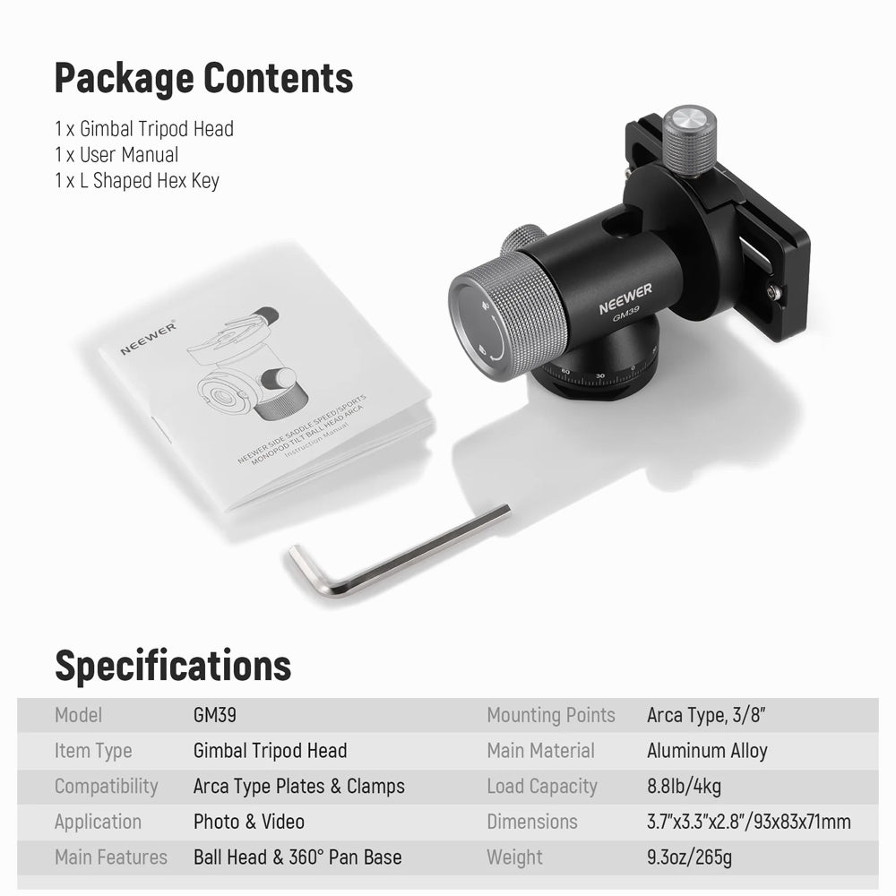 - NEEWER GM39 Monopod Saddle Gimbal Tripod Tilt Head
