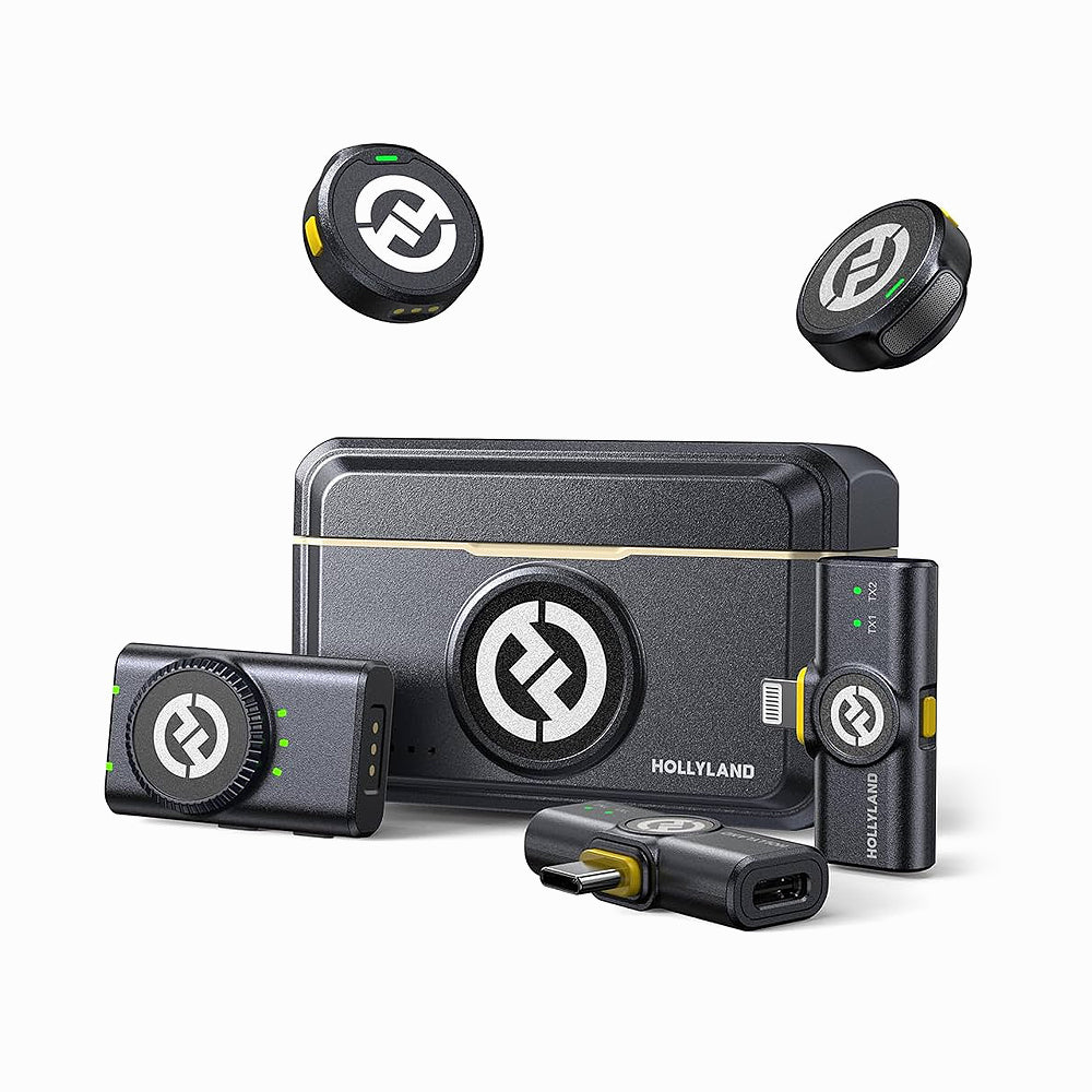 - The combo version of the LARK M2 includes a camera-mount receiver and two plug-in receivers—one Lightning and one USB-C.