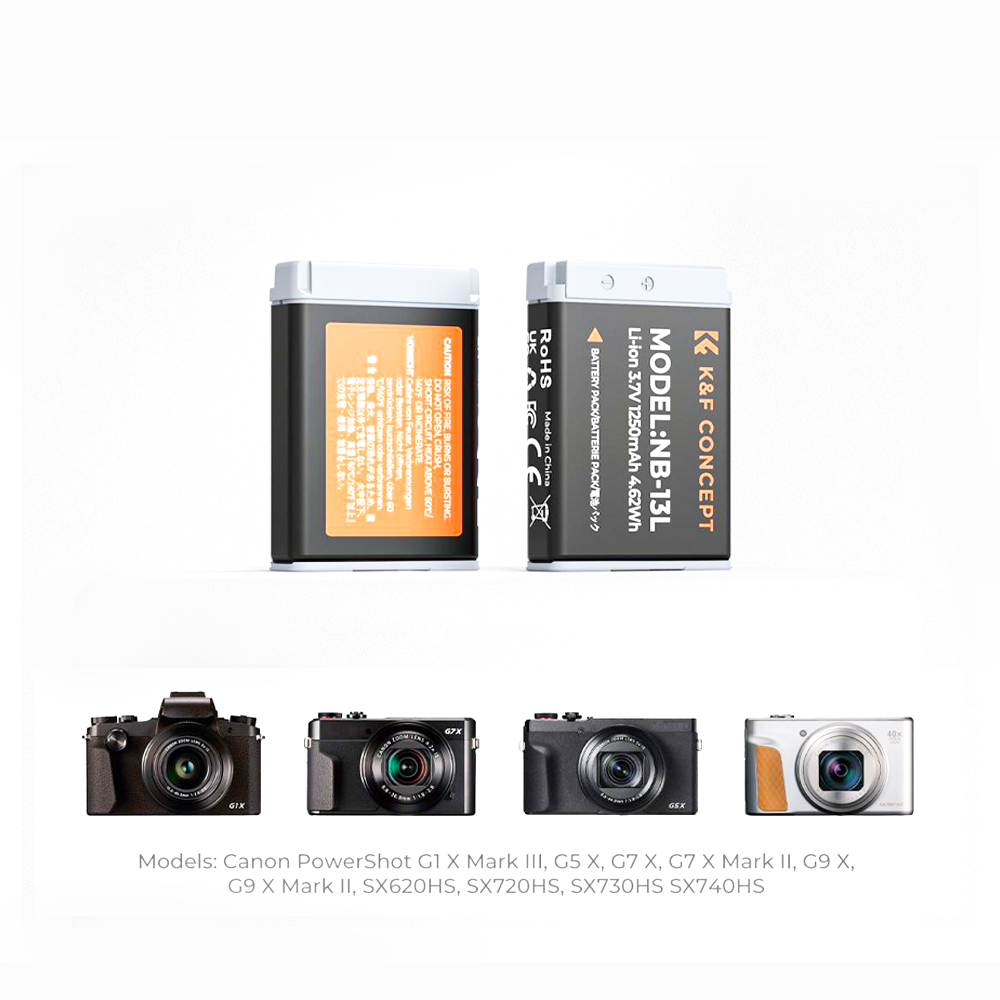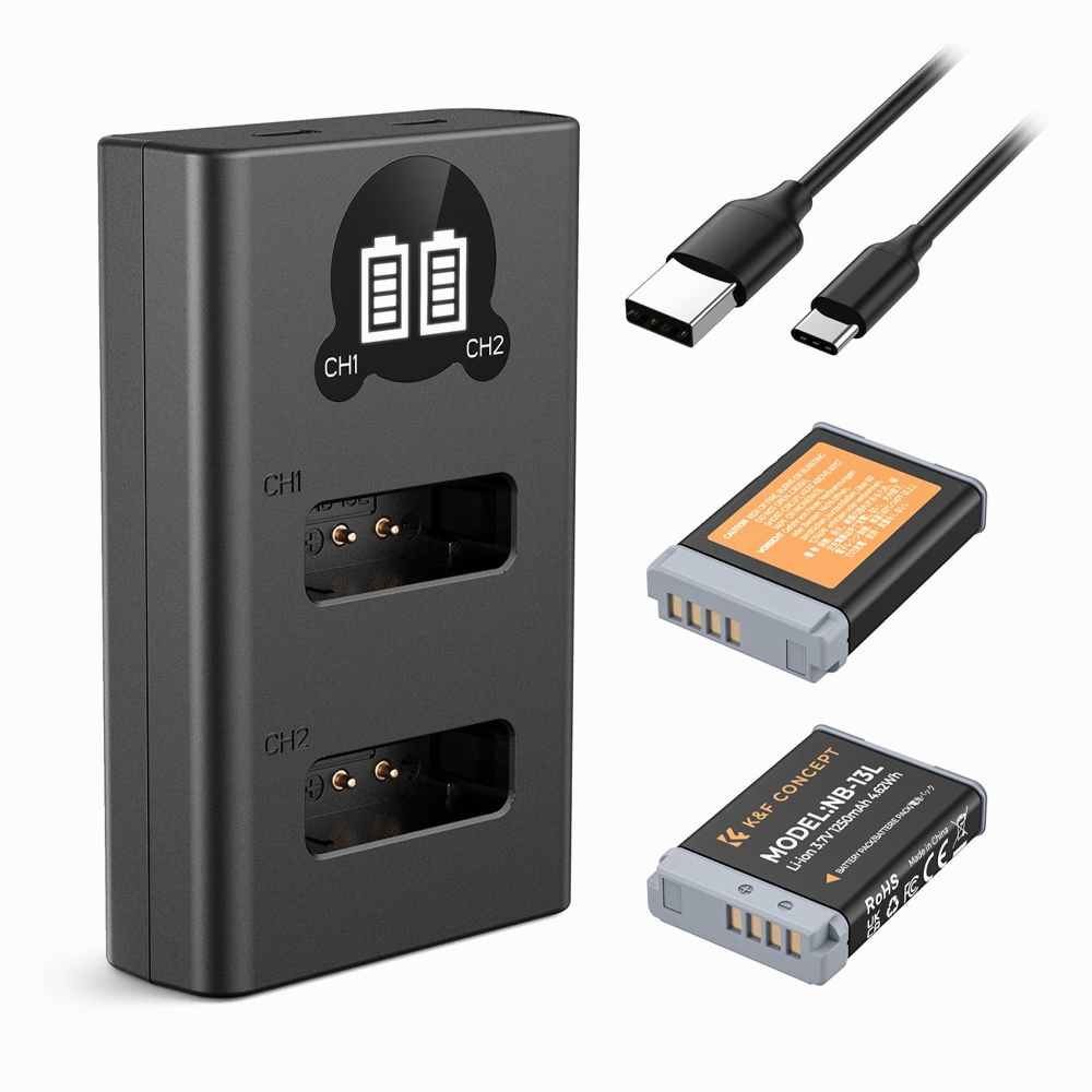 - K&F Concept 2 Pack NB-13L Battery and Dual Slot Charger Set for Canon EOS G7 X Mark II, G7 X, G1 X Mark III, G5 X, G5X Mark II, G9 X, G9 X Mark II, SX620 HS, SX720 HS