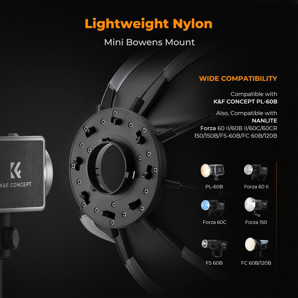- K&F Concept 40cm Mini Octagonal Softbox for PL-60B Bowens Mount COB Video Lights-KF18.0013