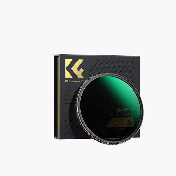 The 2 to 5-stop, 72mm Nano-X Series Variable ND Lens Filter from K&F Concept is a variable ND filter from K&F's Nano-X Series which uses multicoated scratch-resistant optical glass for shock-, water-, and oilproof performance.