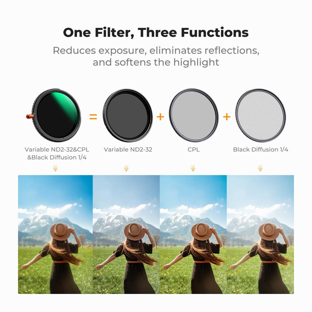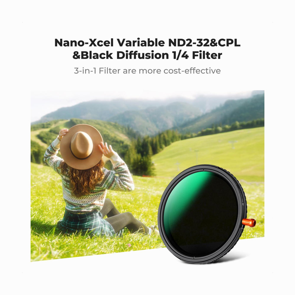 - K&F Concept 77mm Variable ND2-32 (1-5 Stops) & Circular Polarizing Filter CPL & Black Mist 1/4 3 in 1 HD Lens Filter with 28 Multi-Coated for Camera Lenses Nano-Xcel Series (KF01.2927V2)