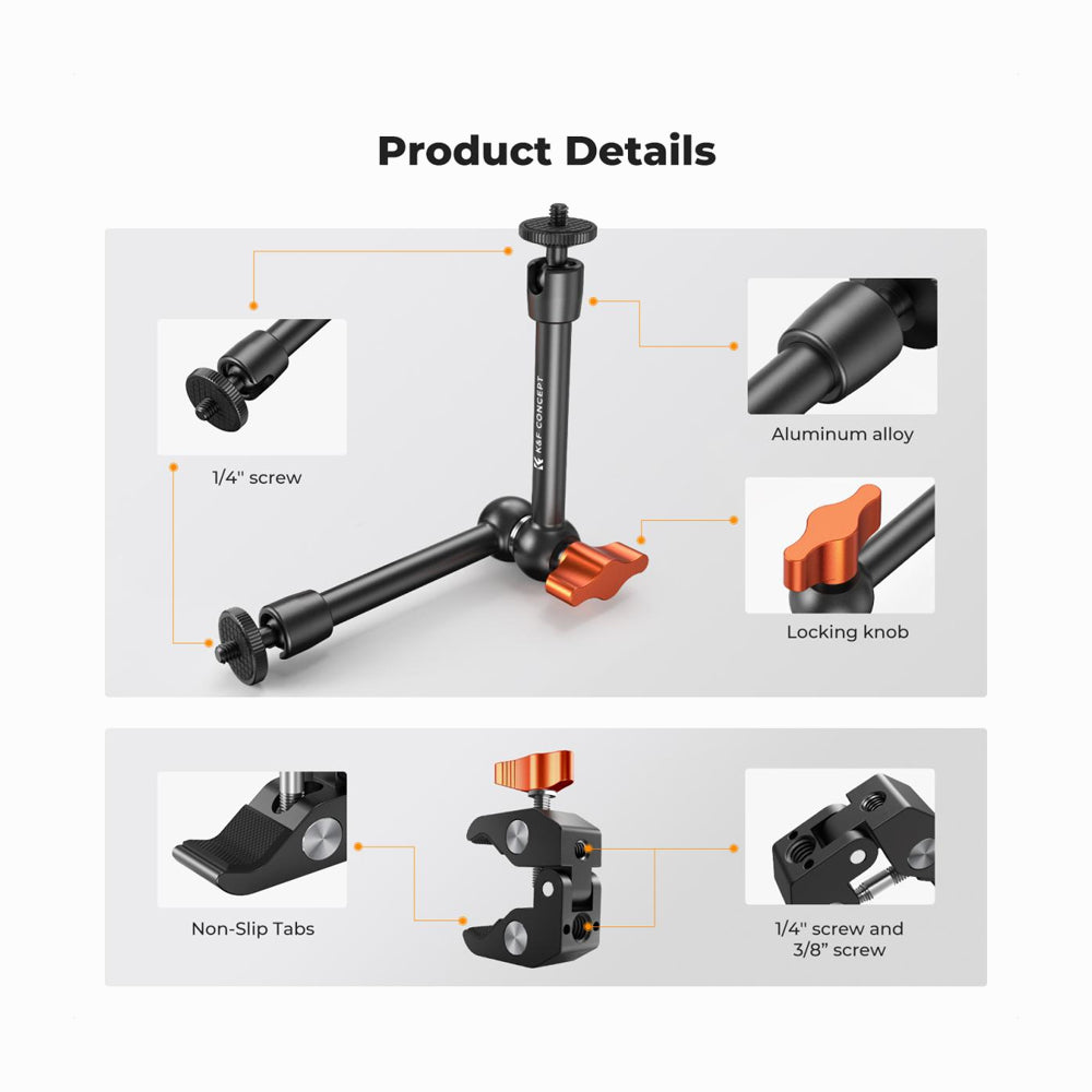 - K&F Concept 9.8" Magic Arm with Super Clamp, Magic Arm Clamp Kit with 1/4" & 3/8" Thread Screw (KF31.131)