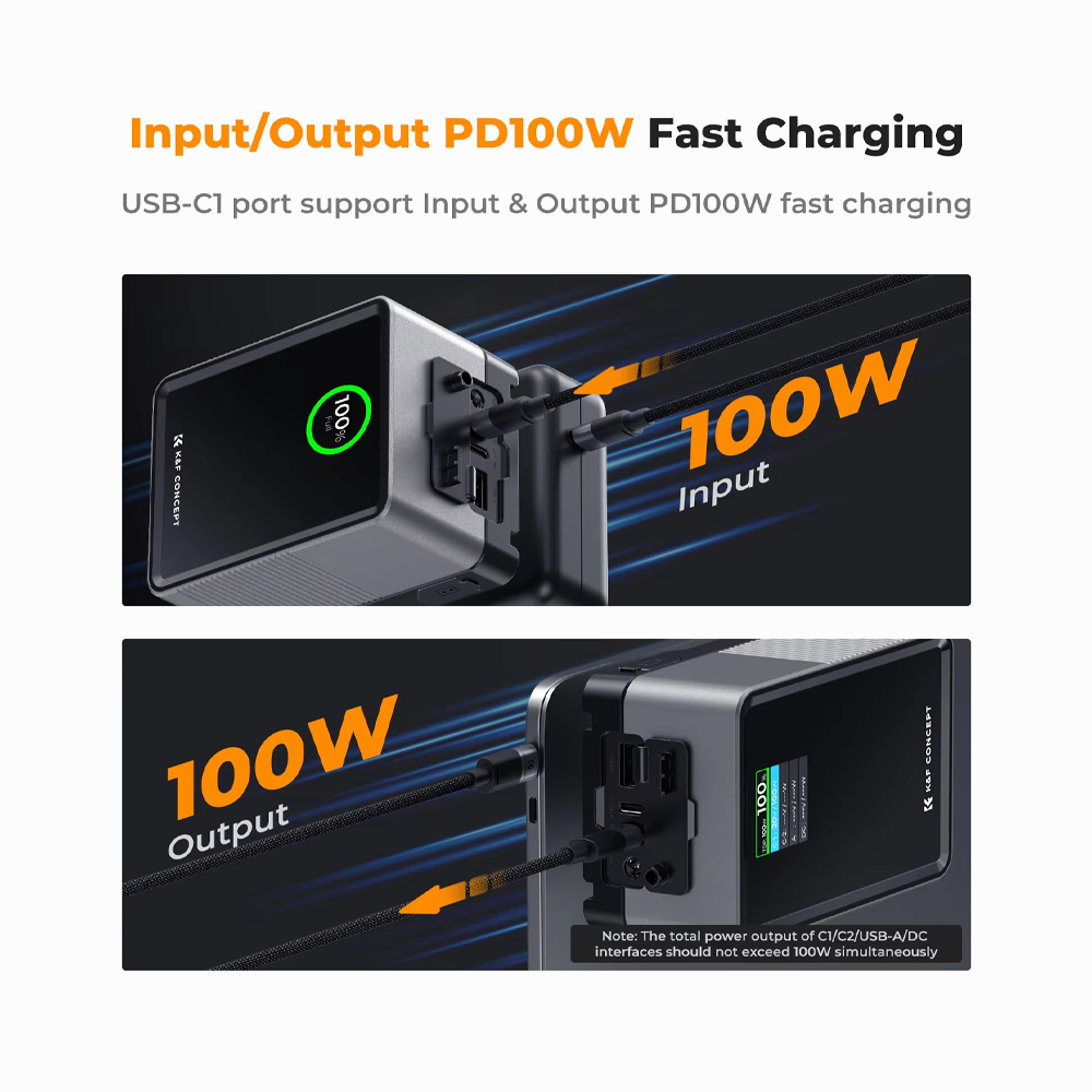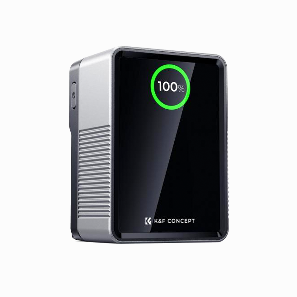 - K&F Concept 99Wh V-Mount Battery with PD100W USB-C Fast Charging and Multi-Output Ports, TFT Digital Screen & Emergency Light for Camera, photography light, smartphone, laptop etc.