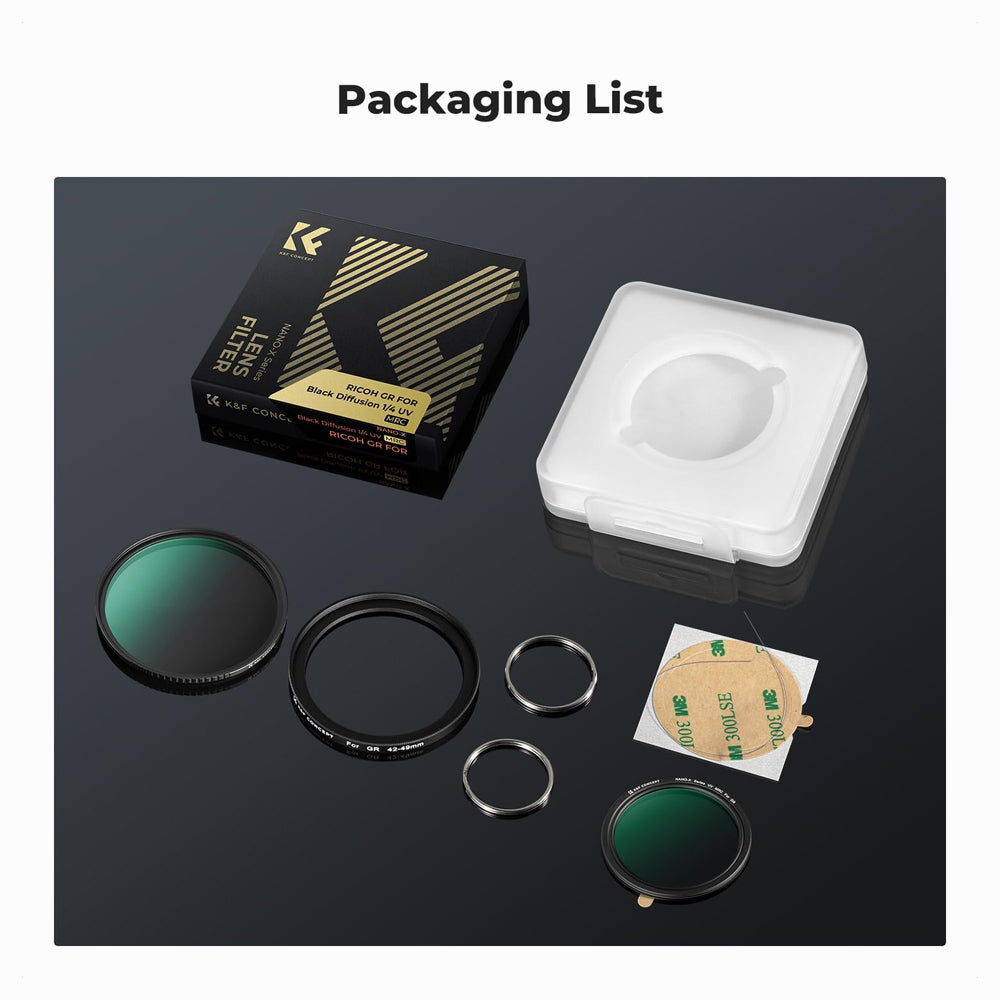 - K&F Concept Black Diffusion 1/4 +MCUV Protection Filter +42-49mm Adapter Ring Kit for Ricoh GR IIIx GR IIIx HDF GR3x HDF GR III GR III HDF GR3 HDF GR II GR2(SKU.2336)