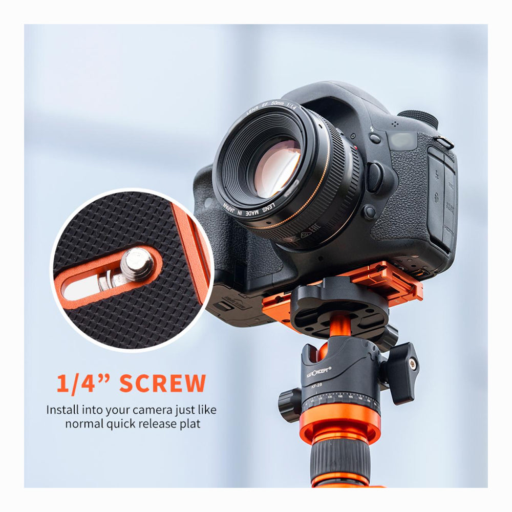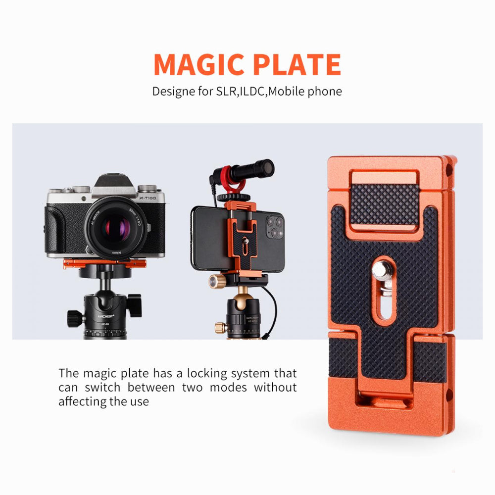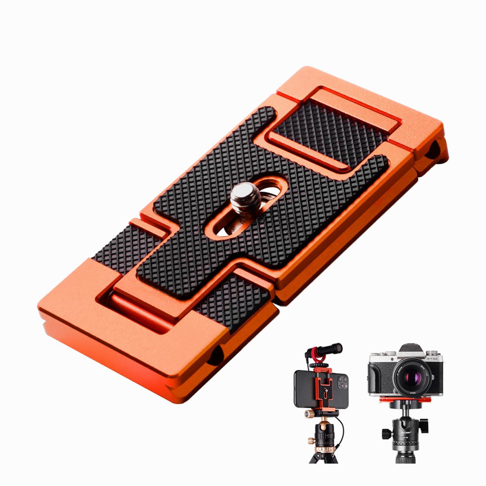 - K&F Concept CA02 Aluminum Multi Quick Release Plate 2 in 1 Professional Camera Quick Release Plate for Tripod Camera Mobile Phone (Orange) (KF31.027V2)