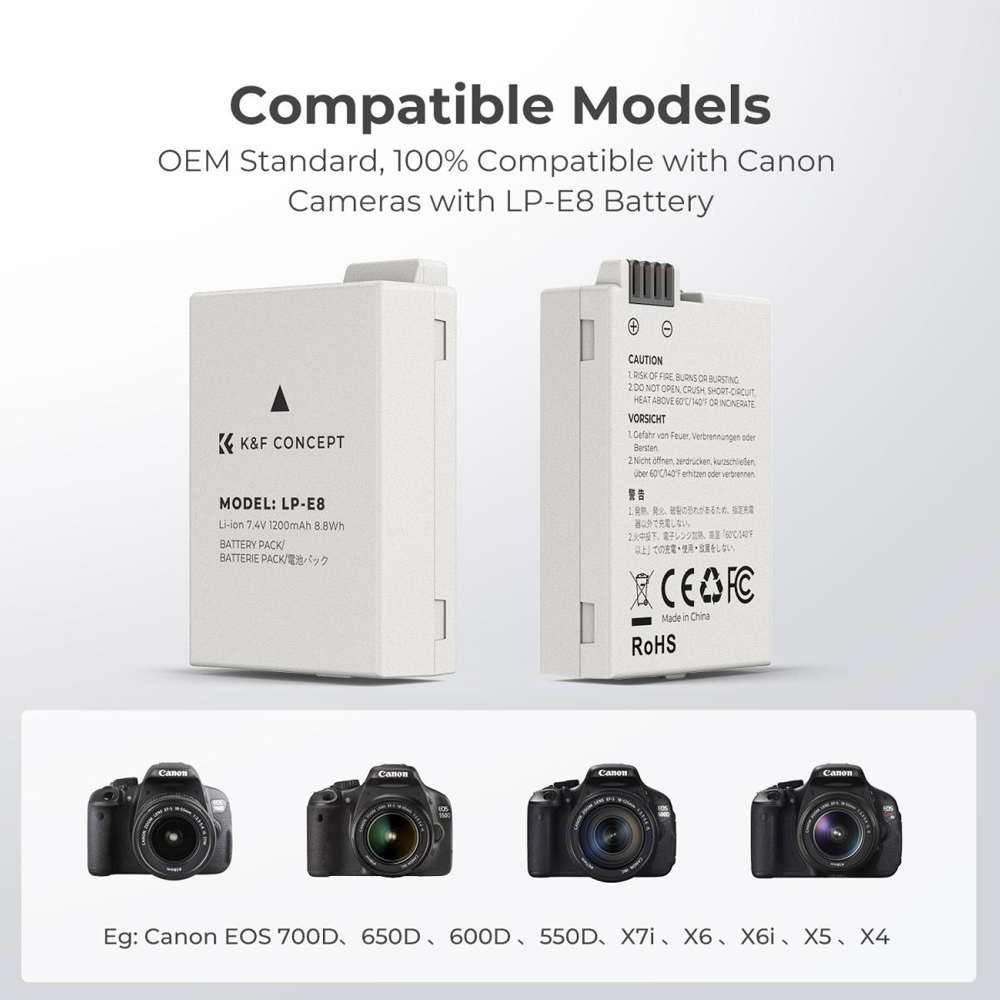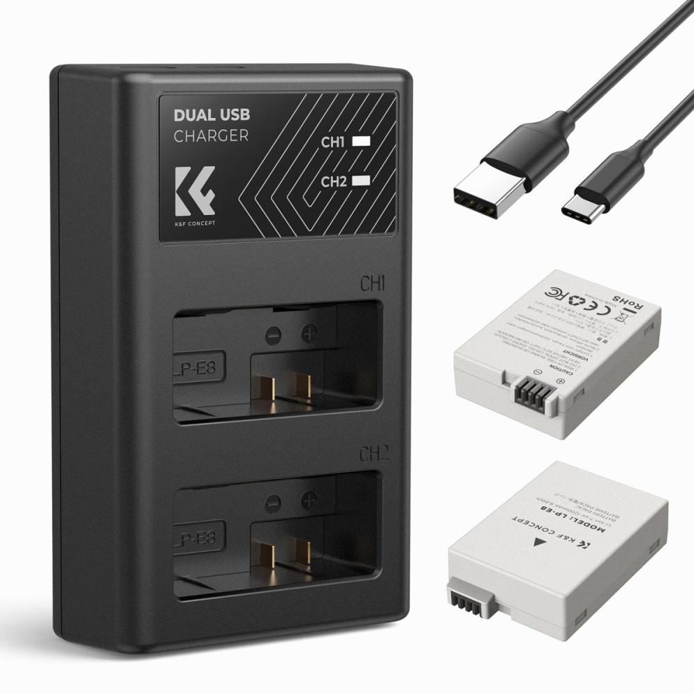 - K&F Concept Canon LP-E8 Battery and Charger Set with Dual Slot Charger for Canon EOS 700D 650D 550D X7i X6i X5(KF28.0027)