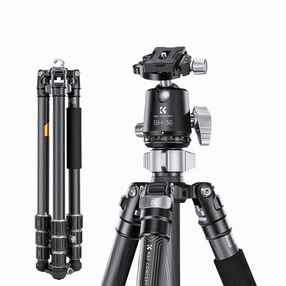 - K&F Concept Carbon Fiber Tripod Capacity 16KG/35.2lbs with 36mm Metal Ball Head Load X284C4+BH-36 SKU: KF09.117