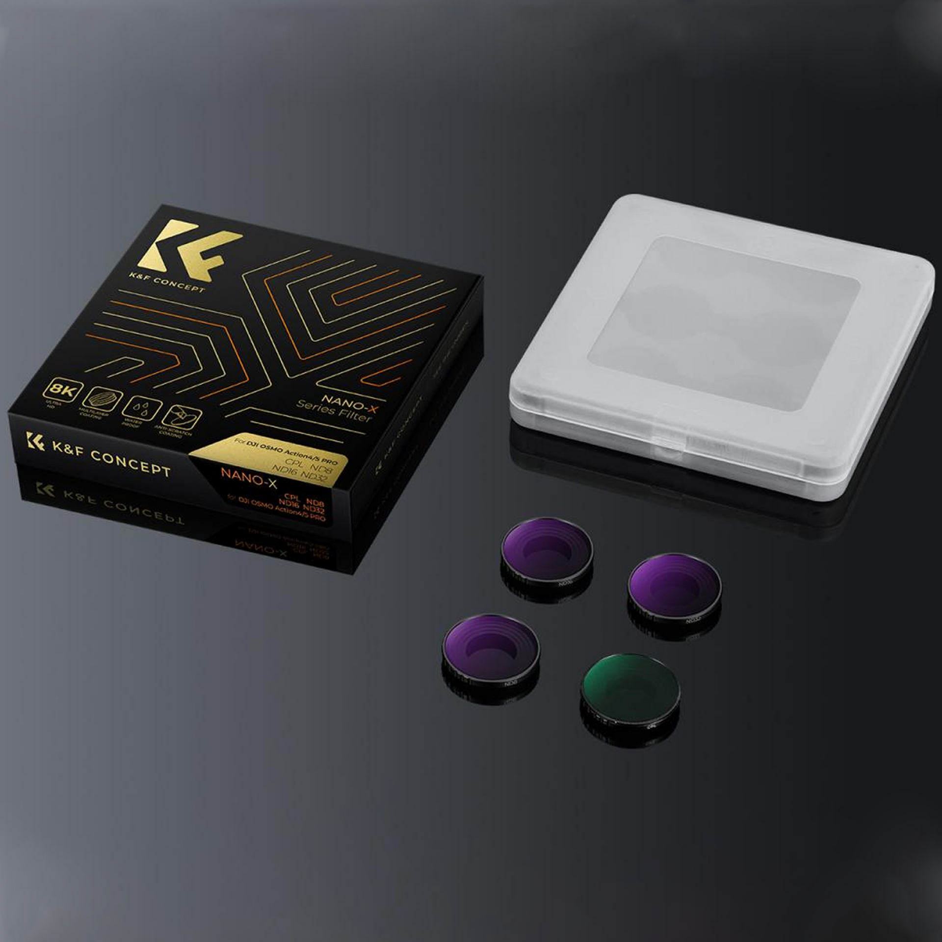 - K&F CONCEPT DJI Osmo Action 4 & Osmo Action 5 Pro Action Camera Filter Set CPL + ND8 + ND16 + ND32 (SKU.2337)