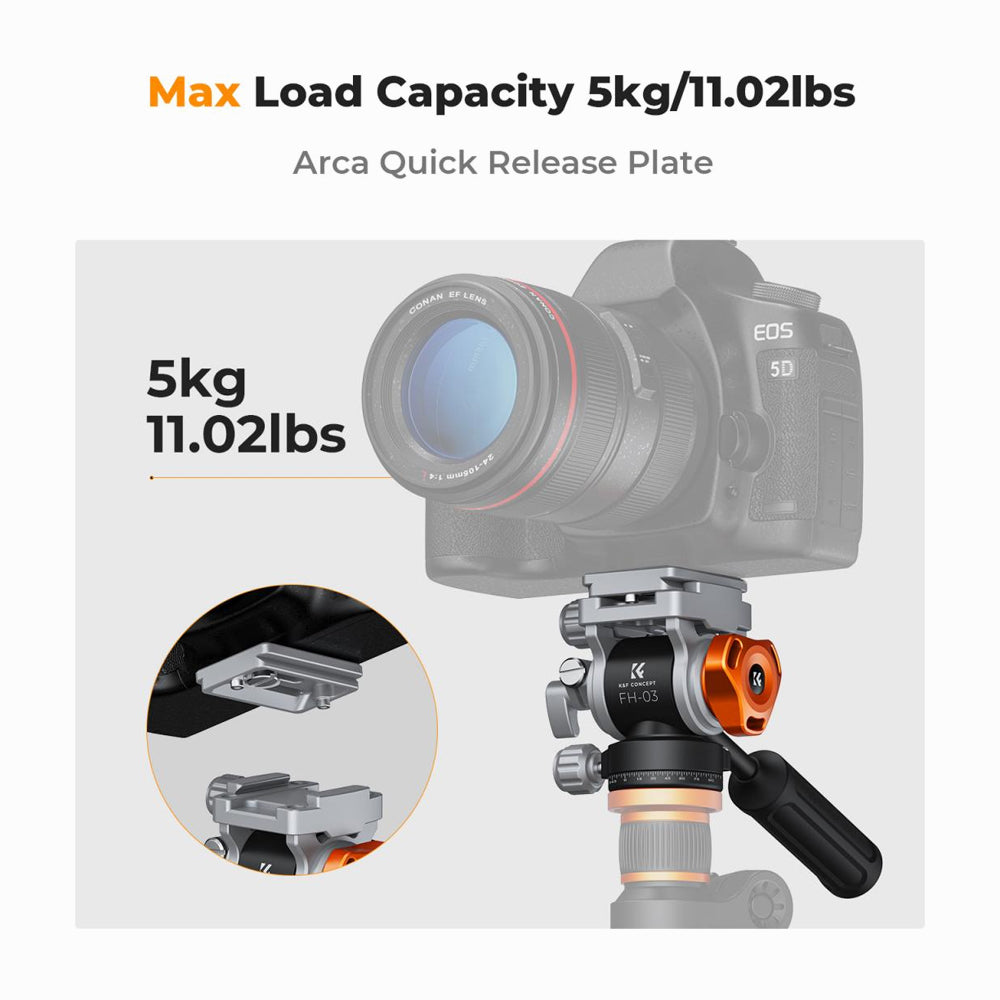 - K&F Concept FH-03 Video Fluid Head Tripod Head Max Load 11lb/5kg, Silky-Smooth, Stable Tripod Fluid Head for pan and tilt,Arca Swiss-Compatible Fluid Head Mount (KF31.087)