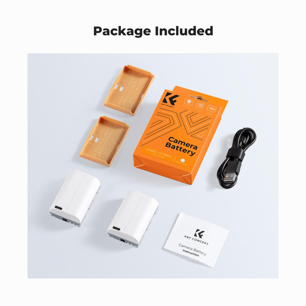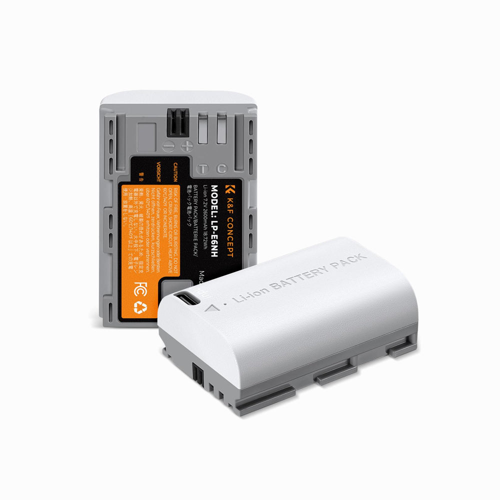 - K&F Concept LP-E6NH Battery with 2600mAh Capacity and Type-C Fast Charging for Canon EOS 90D, 80D, 70D, 5D, Mark II, III, IV, 5DS, SR, 6D, 6D Mark II, R5, R6, R6 II, R7(KF28.0033S1)