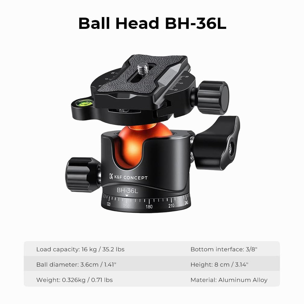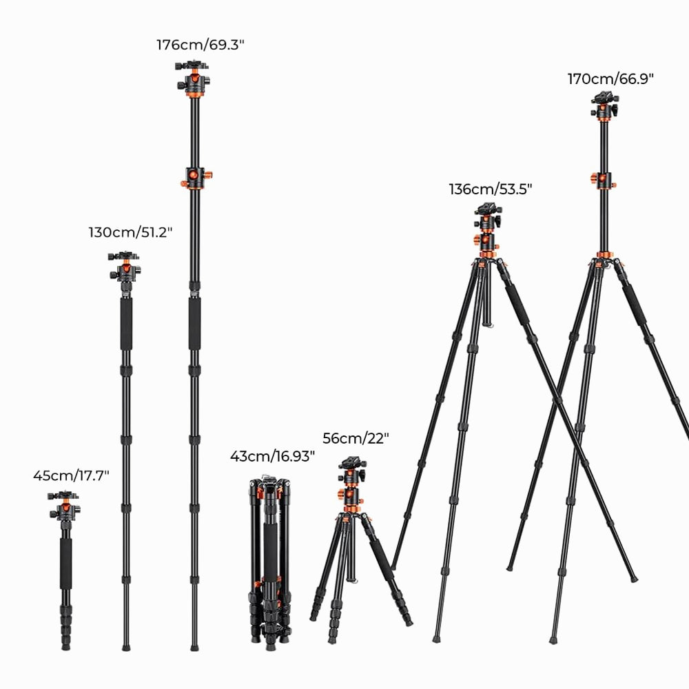 - K&F Concept T255A4+BH-32L Camera Aluminum Tripod with Ball Head & Detachable Monopod((Red)KF09.085V4