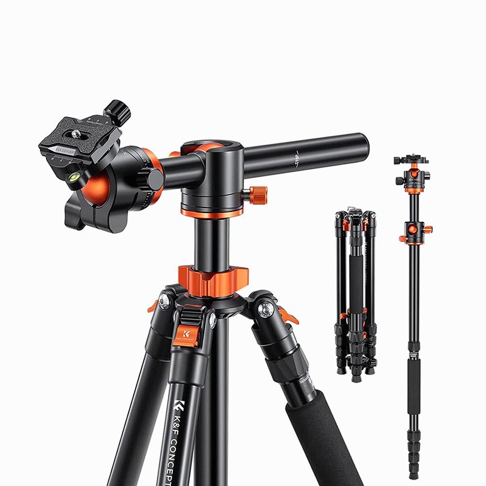 K&F Concept 67”/1.7m Aluminum Video Camera Tripod Transverse Center Column 26lbs/12KG Load Capacity Portable Monopod with 32mm Ball Head Quick Release Plate, for Travel and Work T255A4+BH-32L(Red)