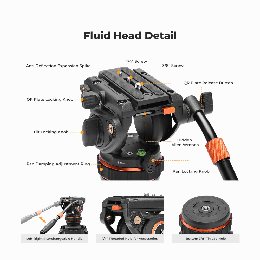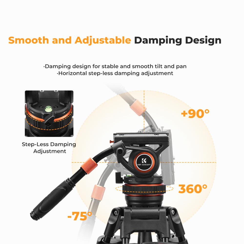 * Professional-grade fluid head provides smooth camera movement, suitable for video and fine composition, ensuring shooting stability. Panoramic shooting is equipped with infinitely adjustable damping, which can easily adjust the damping feel and achieve 360-degree horizontal rotation, providing precise control and quick adjustment to meet more shooting needs.