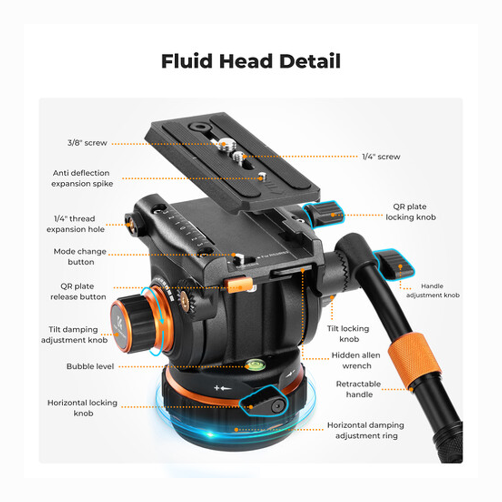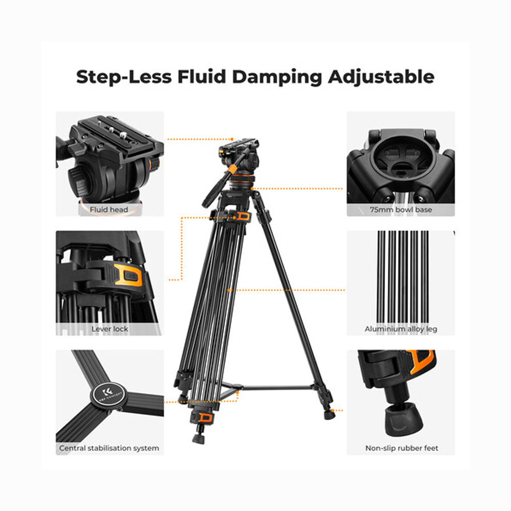 - K&F Concept VA3 Heavy-Duty Aluminum Tripod with BV20 Fluid Head
