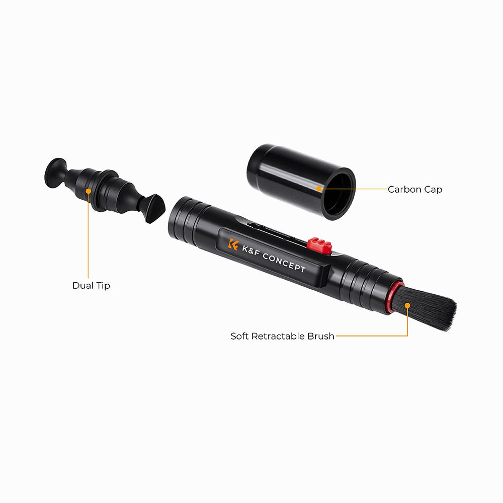 Keep your camera lens and screen clean. The K&F Concept cleaning pen stands out with its telescopic design - a special slider allows you to slide out a soft brush to clean your camera screen. On the other side of the product there is a double head: round and triangular, which allows you to remove dirt from the camera lens. The product is well suited for use on smartphone screens, magnifiers, etc.
