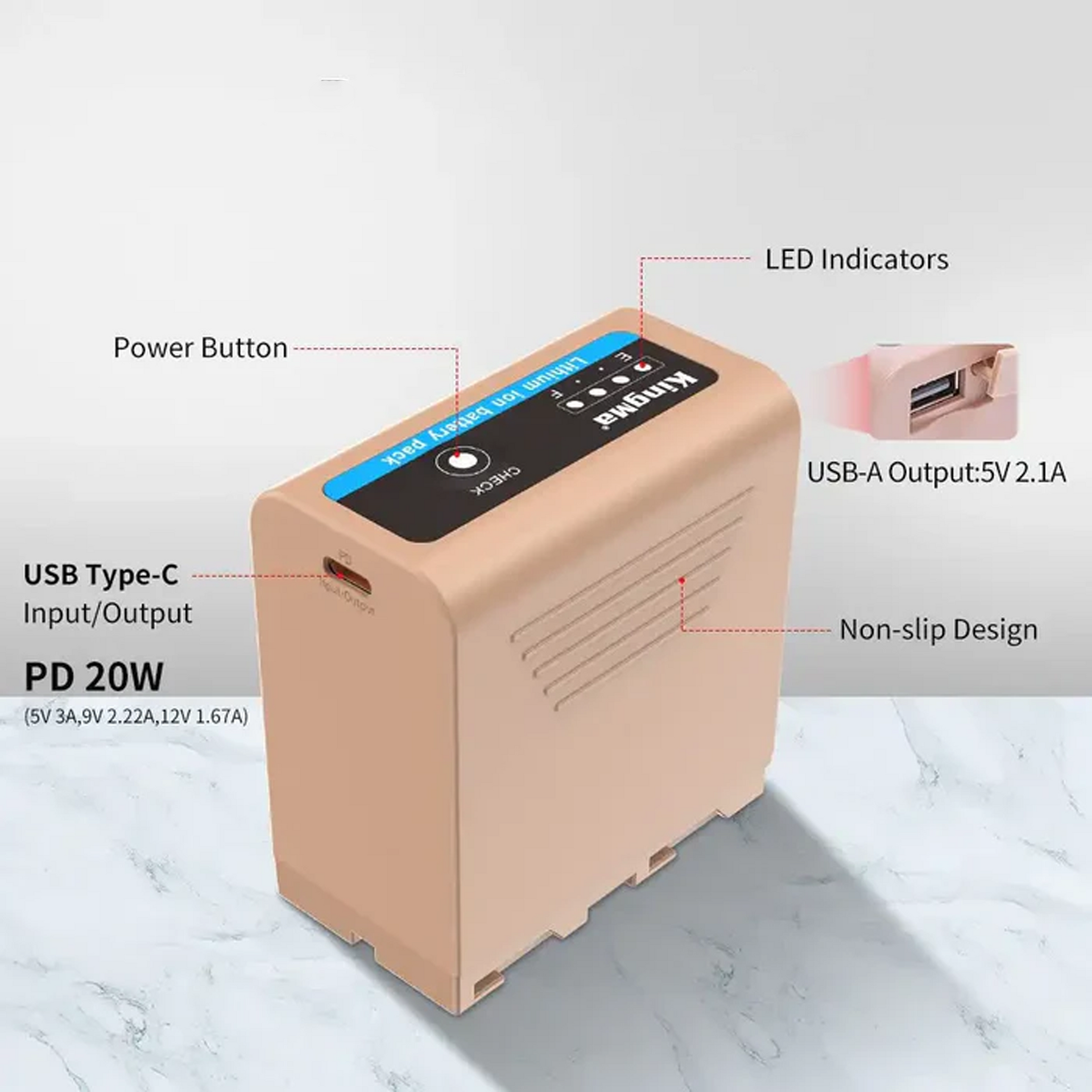 - USB-A Output 5V 2.1A