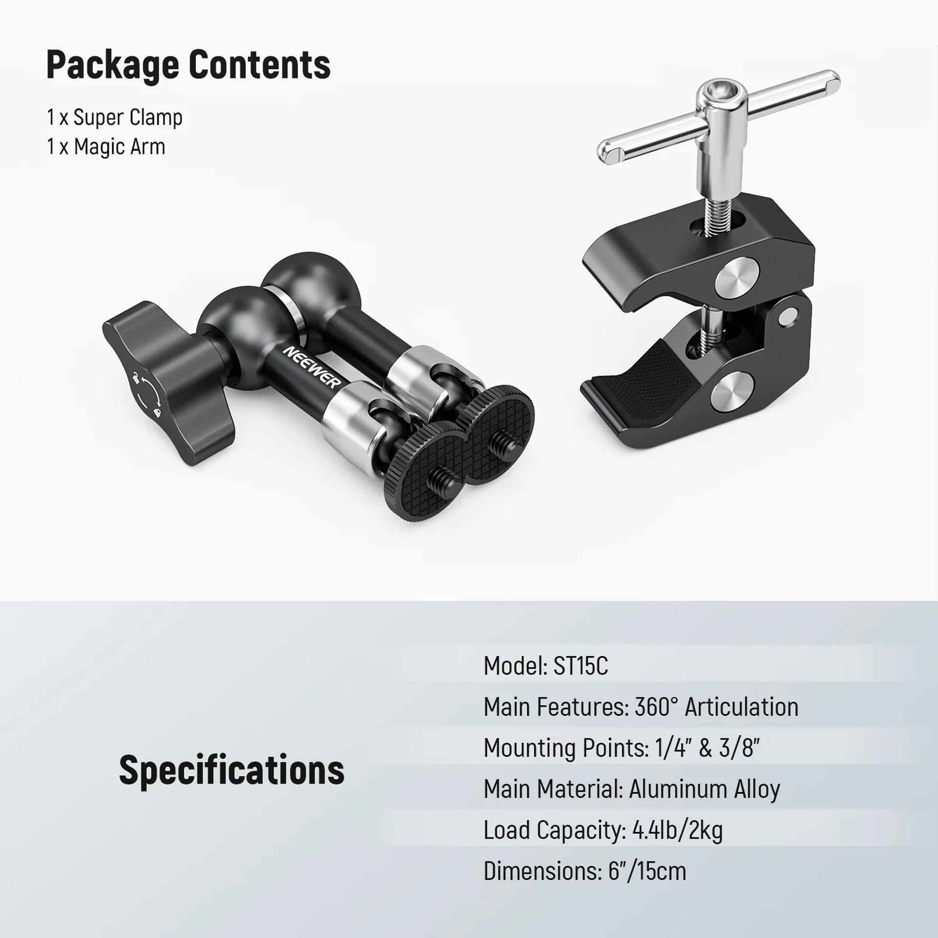 - NEEWER 11-inch Articulating Magic Arm Clamp Mount with Super Clamp, Camera Monitor Mount with 1/4" 3/8" ARRI Locating Pins & Holes for DSLR Action Camera Video Light ST16C
