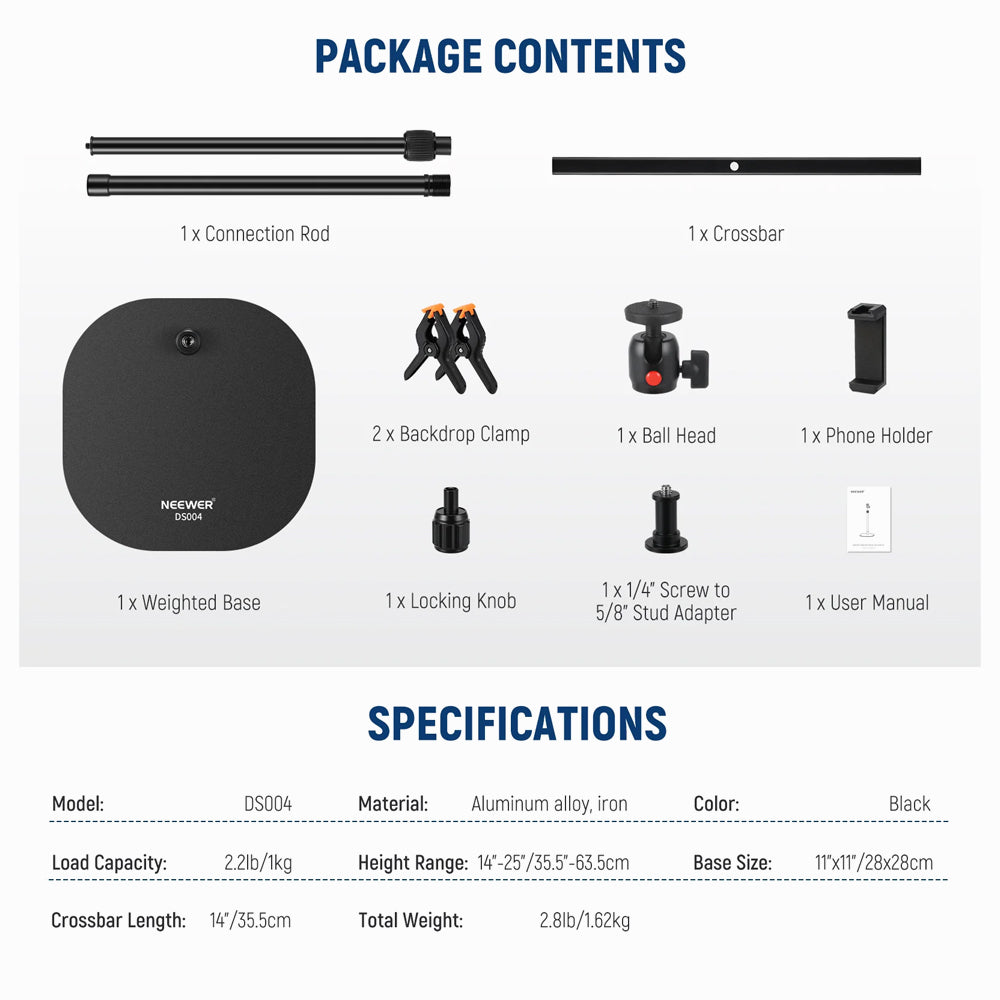- NEEWER DS004 T Shaped Tabletop Backdrop Stand Kit
