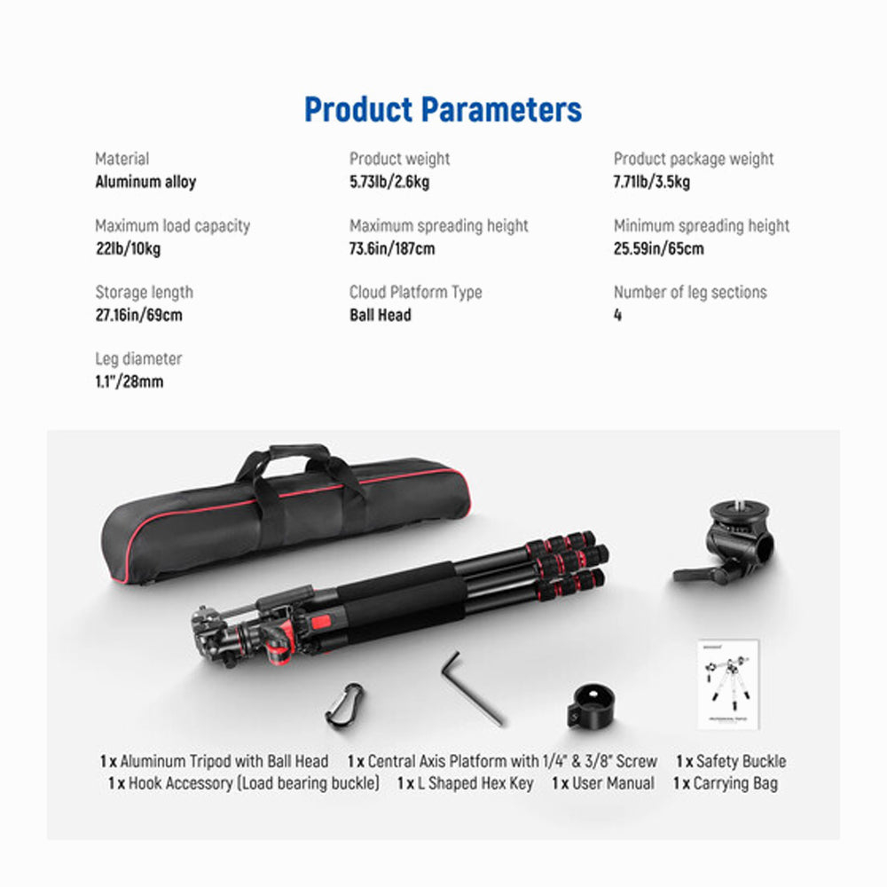 Neewer TP27 Aluminum Tripod with Multi-Angle Center Column and Ball Head